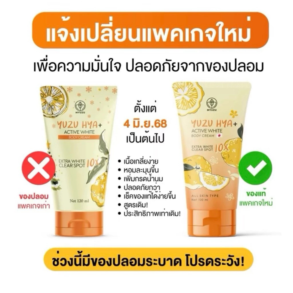 (หลอด) แพ็คเกจใหม่ Myuzu Yuzu Hya+ Active -มิวซุ ยูซุ ไฮยา แอคทีฟ ไวท์ บอดี้ ครีมบำรุงผิว(120 g.)