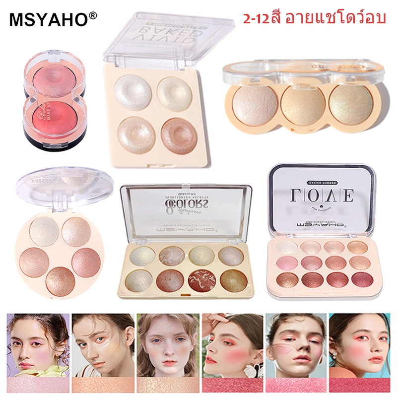 MSYAHO 2-12สี อายแชโดว์อบ ไฮไลท์บลัช กระบวนการอบ กันน้ำและติดทนนาน ประกายมุก NEW Baked Eyeshadow