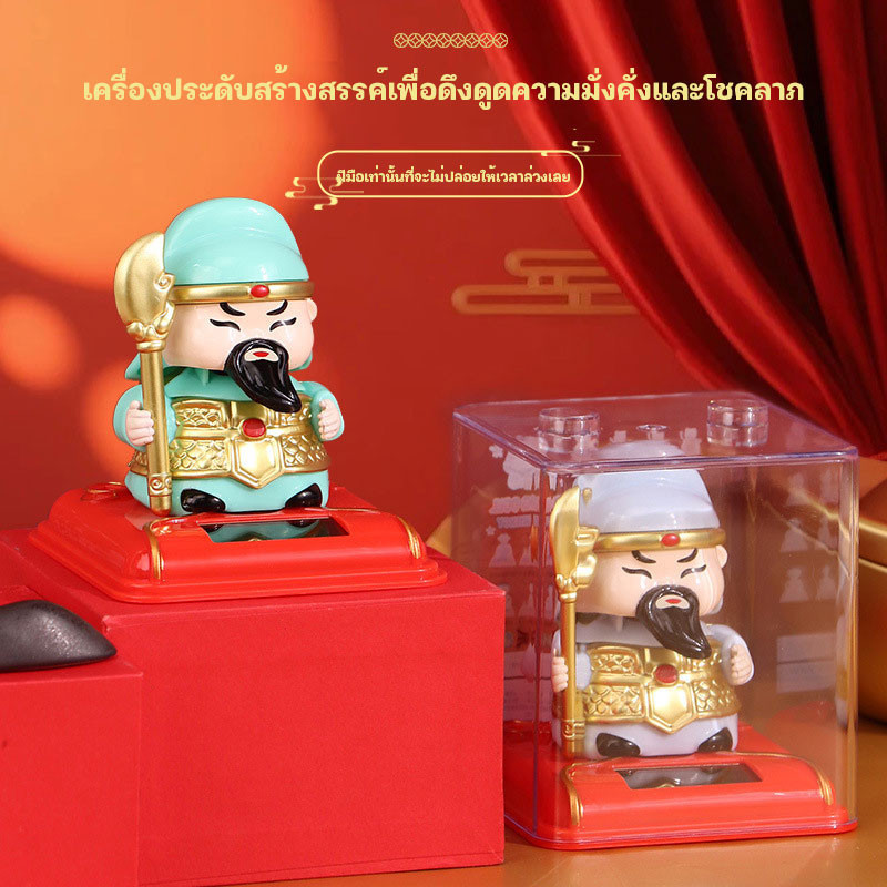 ตัวแสดงพระเจ้าพ่อกวān (เทพเจ้าของทรัพย์สิน) หัวขยับด้วยพลังแสง แช่แข็งมีสี 3 รูปแบบ โต๊ะทำงาน หน้ารถ ของขวัญ พลังงานแสง