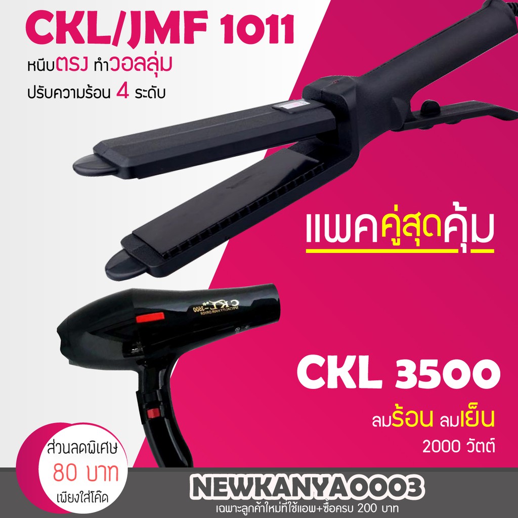 LIC 🔥แพ็คคู่สุดคุ้ม 🔥เครื่องหนีบผม JMF1011 หรือ CKL1011 ที่หนีบผม หนีบผมตรง+ไดร์เป่าผม เครื่องเป่าผม 3500 กำลังไฟ1000วัต