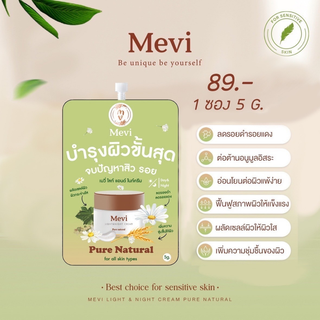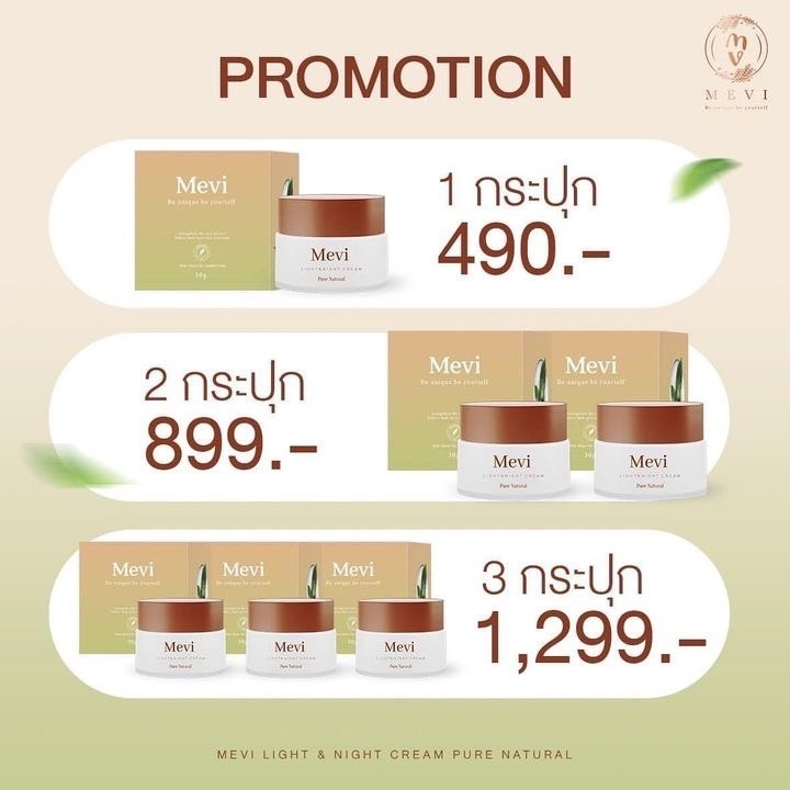 Mevi light&night cream (เมวี่ ไลท์ แอน ด์ ไนท์ ครีม) จบรอย สิว กระจ่างใส