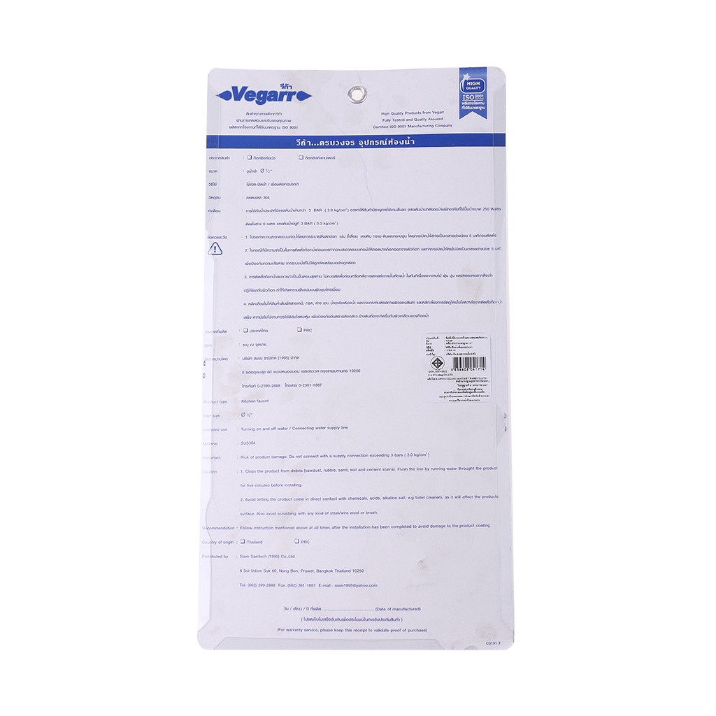 VEGARR ก๊อกอ่างซิงค์ ก้านตรง รุ่น V9109 |EA|