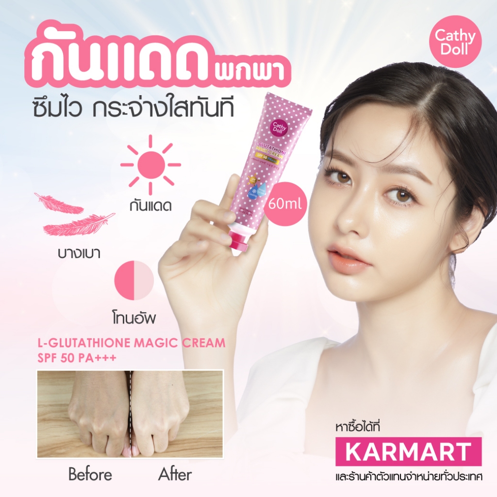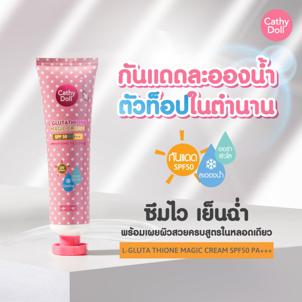 【รุ่นลายจุด】Cathy Doll แอลกลูต้าไธโอนเมจิกครีม【หลอดเล็ก 60ml】L-Glutathione Magic Cream SPF50 PA+++