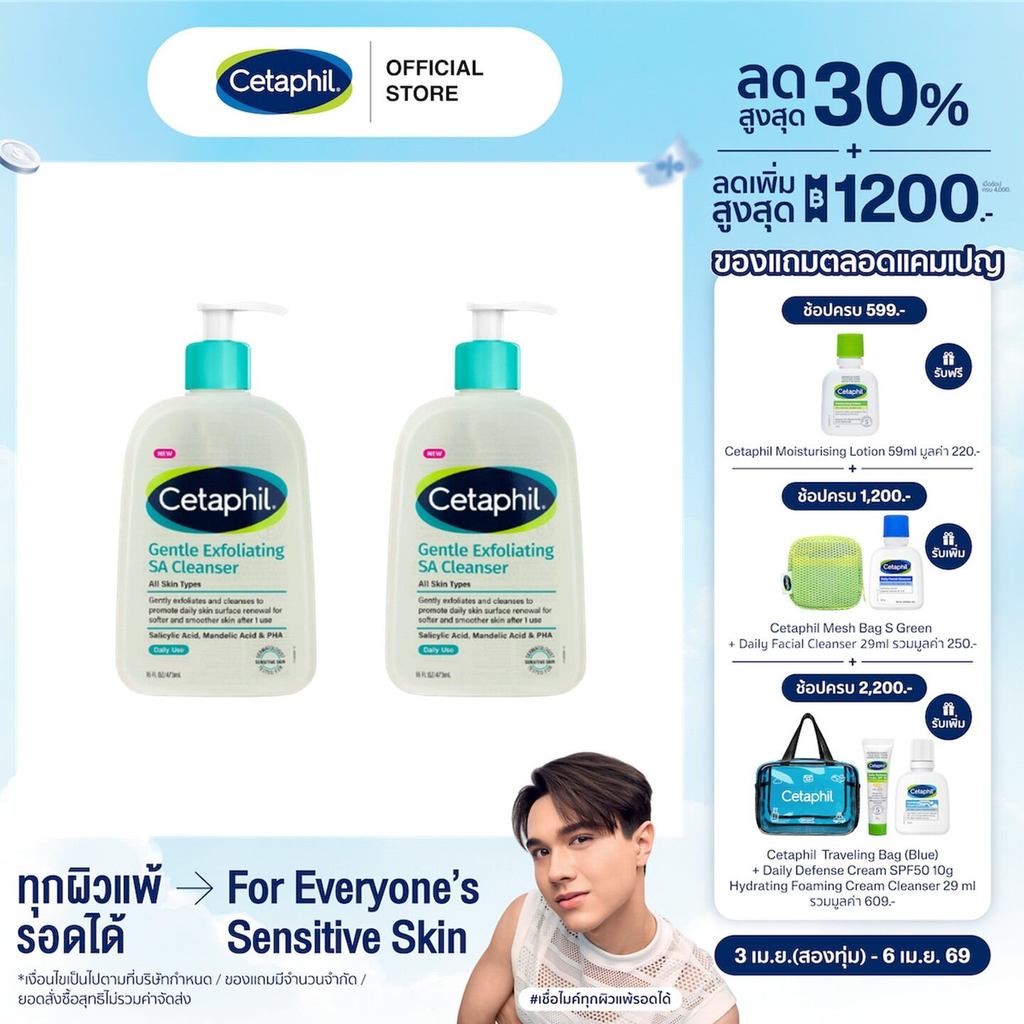 (แพคคู่สุดคุ้ม) Cetaphil Gentle Exfoliating SA Cleanser 473ml เซตาฟิล เจนเทิล เอ็กซ์ฟอลิเอทติ้ง เอสเอ คลีนเซอร์ 473มล