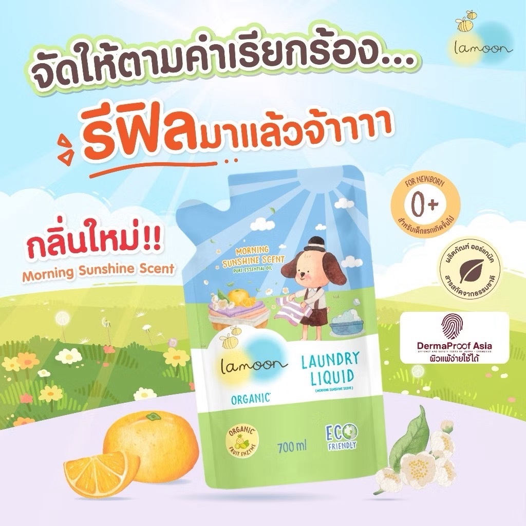ละมุน Lamoon น้ำยาซักผ้าเด็ก ออแกนิค แบบถุงรีฟิล 700ml