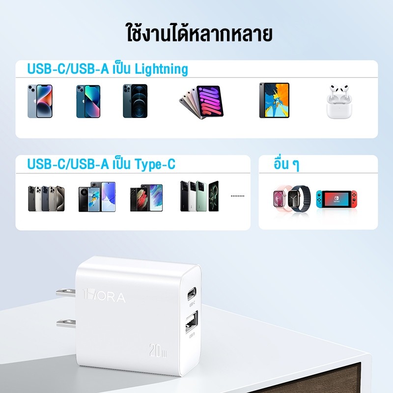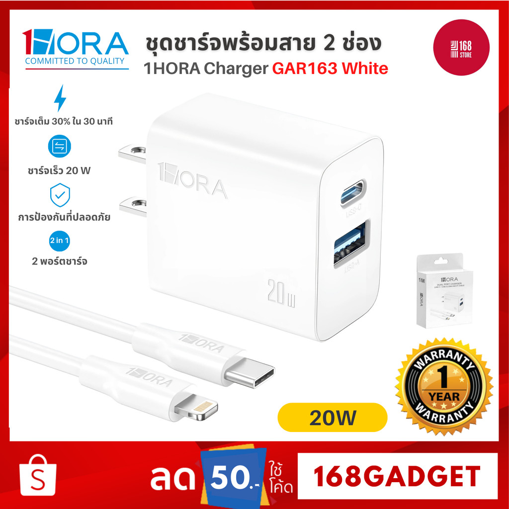 1Hora ชุดชาร์จพร้อมสาย รุ่น GAR161/GAR162/GAR163 PD+USB-Type-C/PD20W รองรับ Cable TIPA 3A