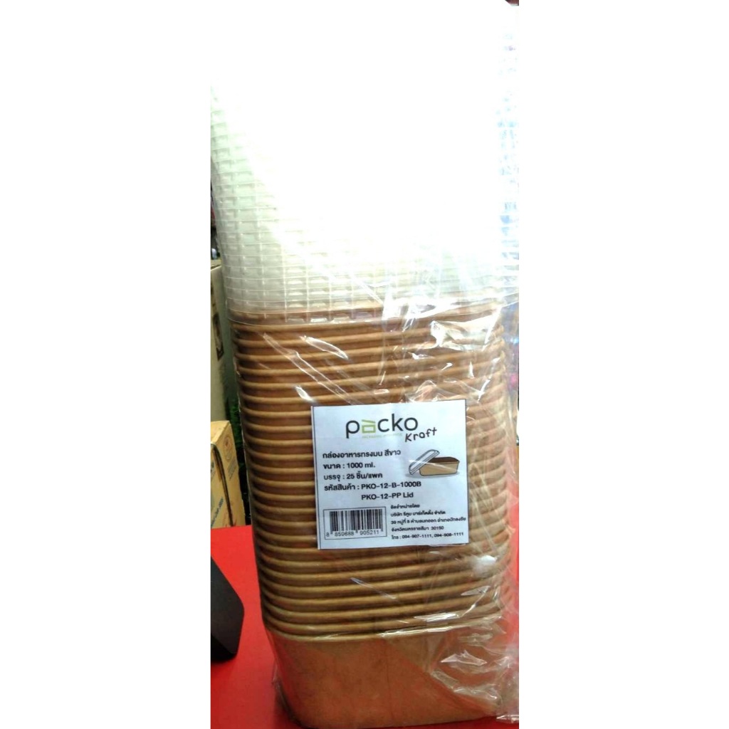 กล่องกระดาษคราฟท์ สี่เหลี่ยมพร้อมฝา Packo แพ็ค/25ชิ้น 1000มล.