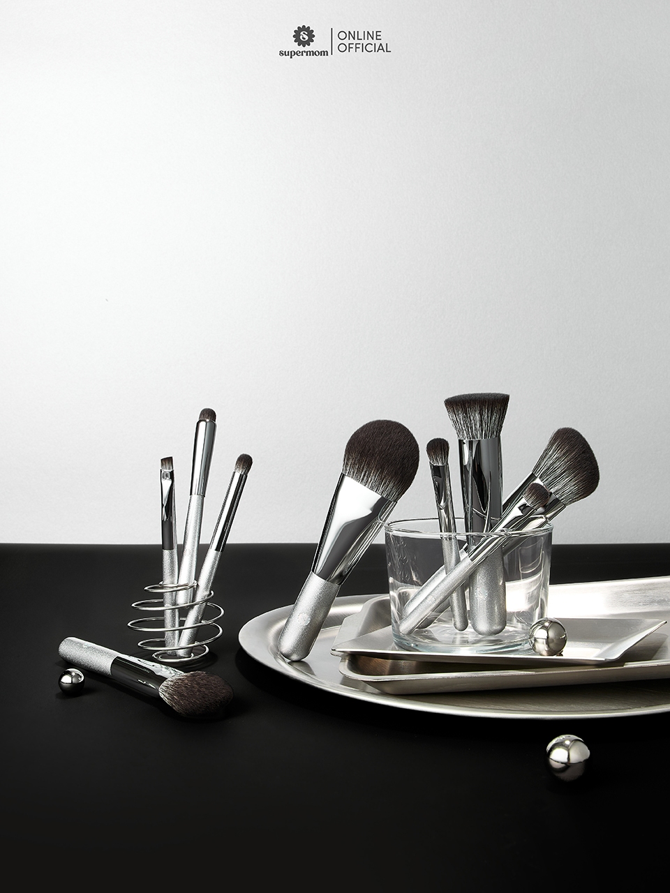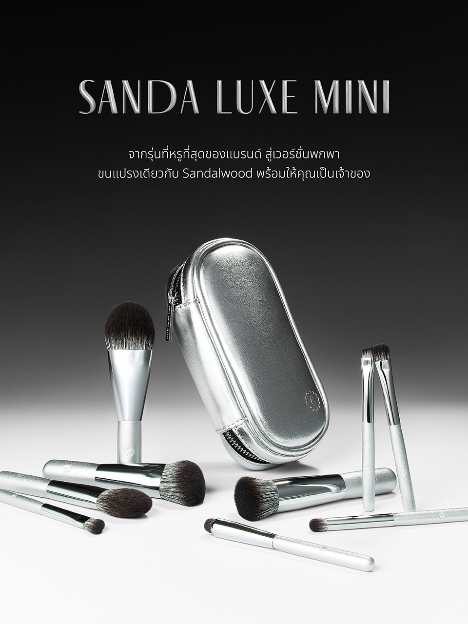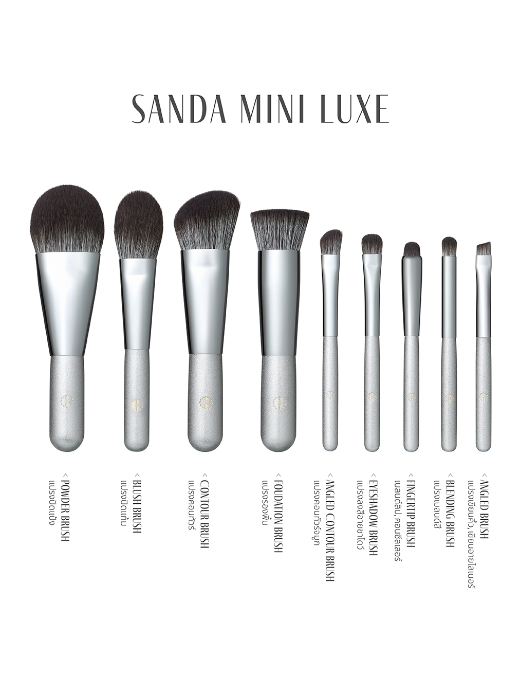 SUPERMOM l SANDA LUXE MINI V.1 ชุดแปรงแต่งหน้า ด้ามสั้น ขนาดพกพา ขนแปรงเกรดสูงสุด จำนวน 9 ด้าม พร้อมกระเป๋าใส่แปรง