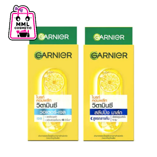Garnier การ์นิเย่ ไบรท์ คอมพลีท วิตามิน ซี วอเตอร์ เจล/สลิปปิ้งมาส์ก 7มล.(กล่อง6ซอง)