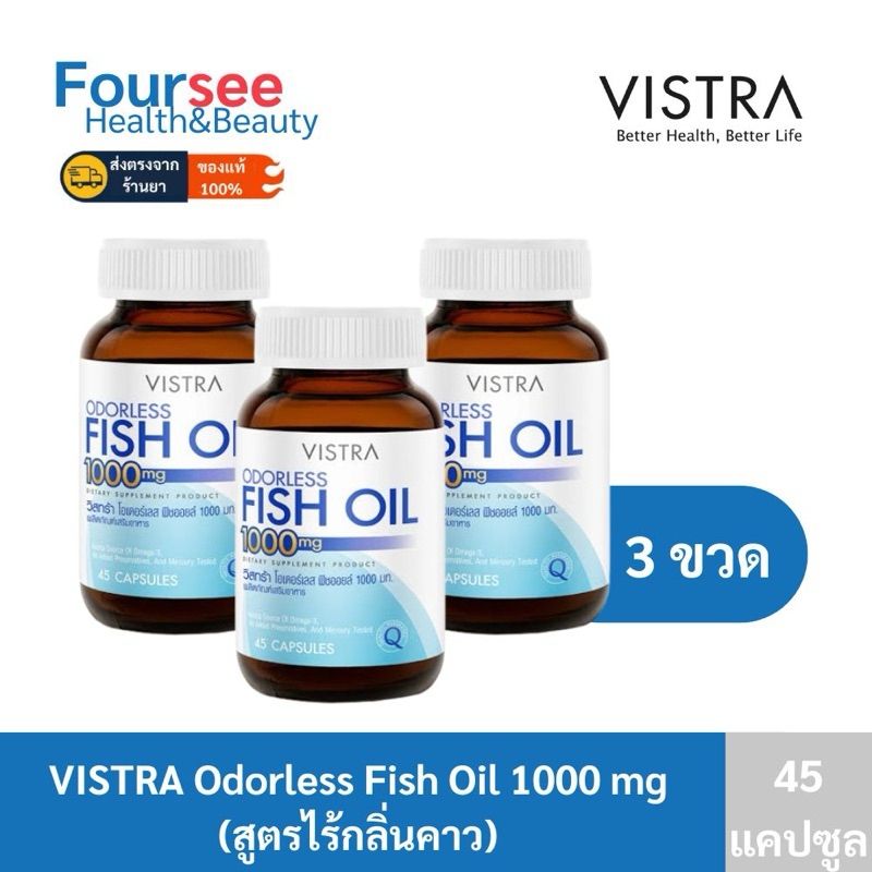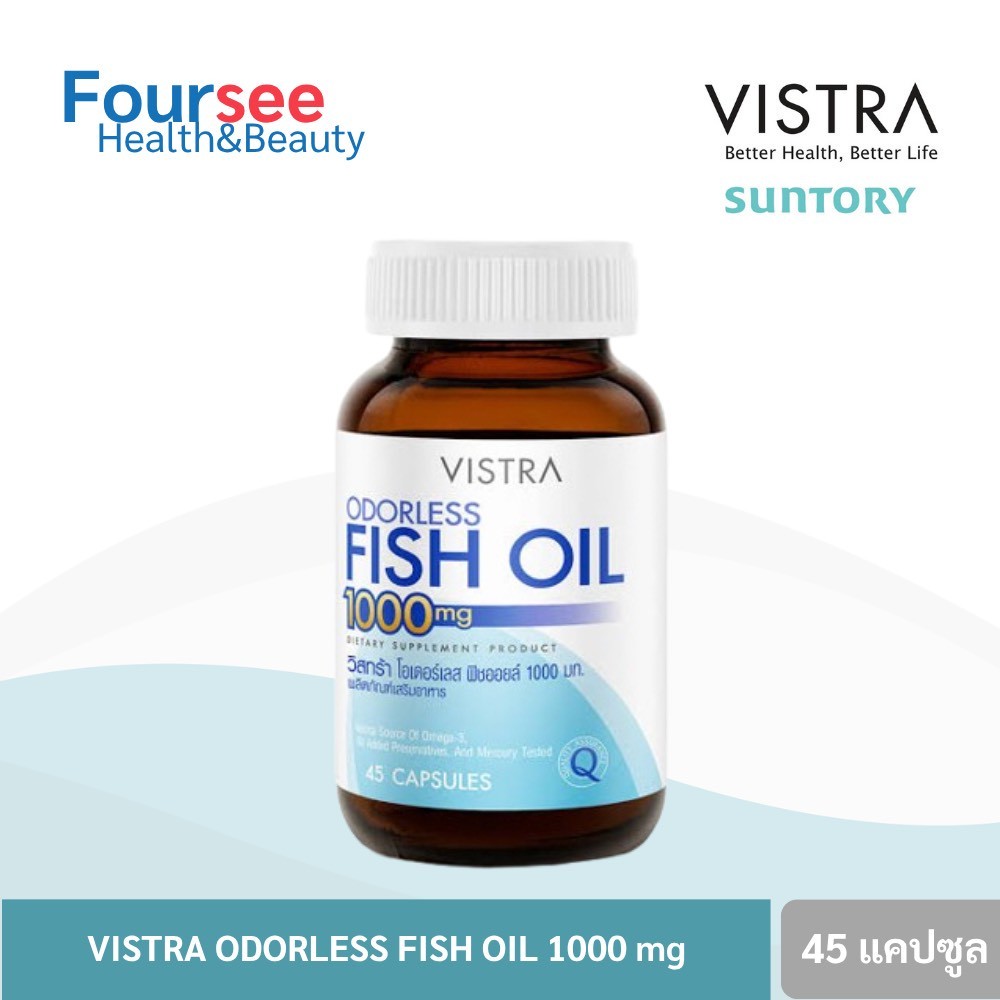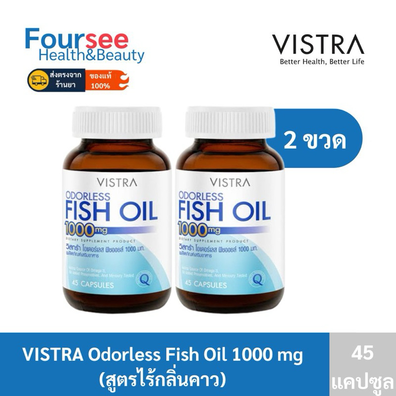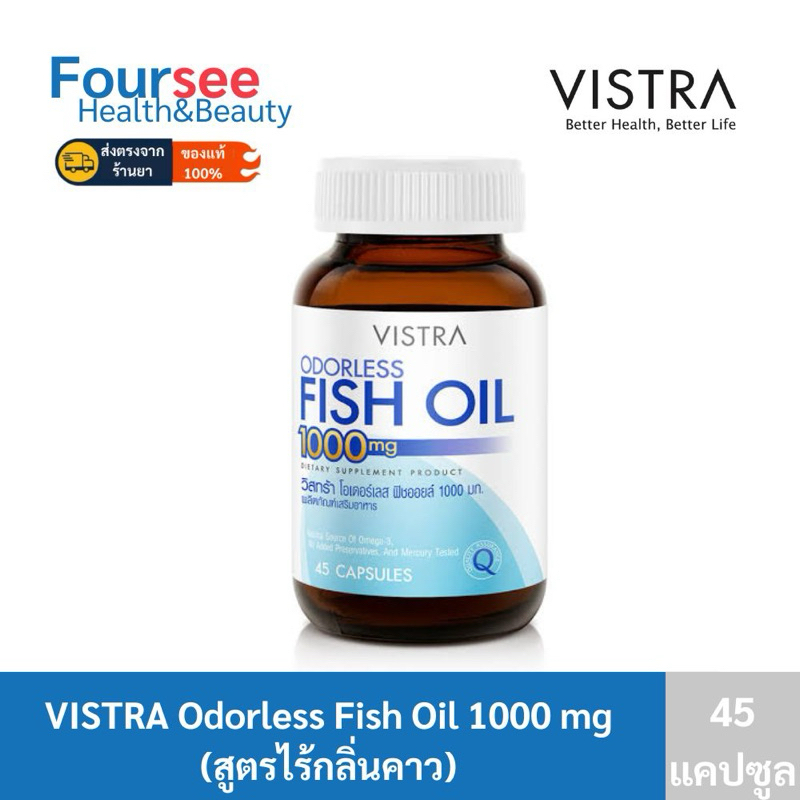 Vistra Odorless Fish Oil 1000mg 45 แคปซูล น้ำมันปลาแท้ สูตรไร้กลิ่น วิสทร้า ฟิชออย 1000 mg