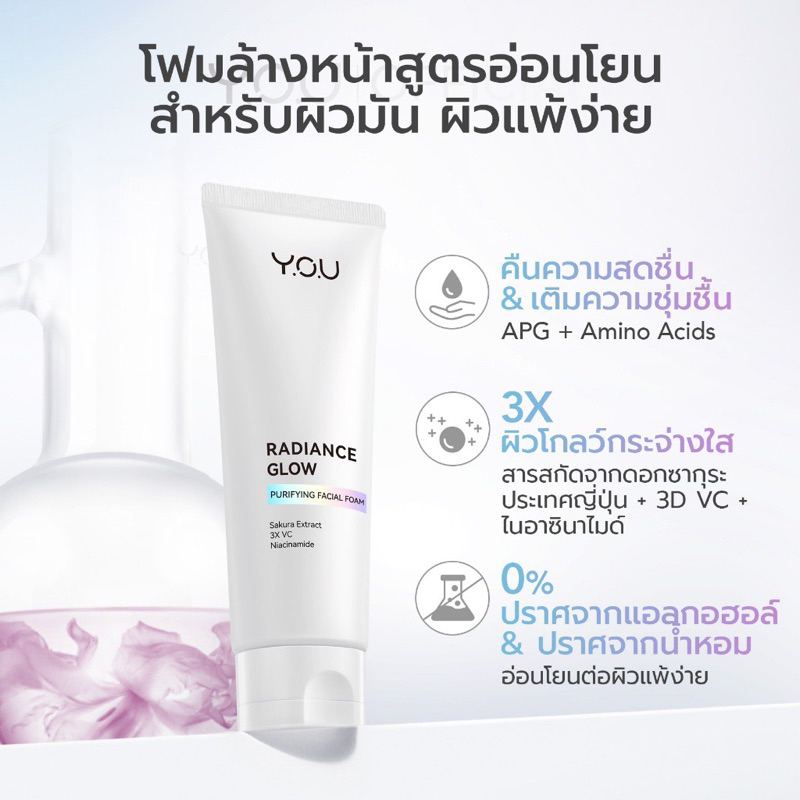 EXP.04/2027 YOU Radiance Glow Purifying Facial Foam 100 กรัม โฟมล้างหน้าผิวกระจ่างใส