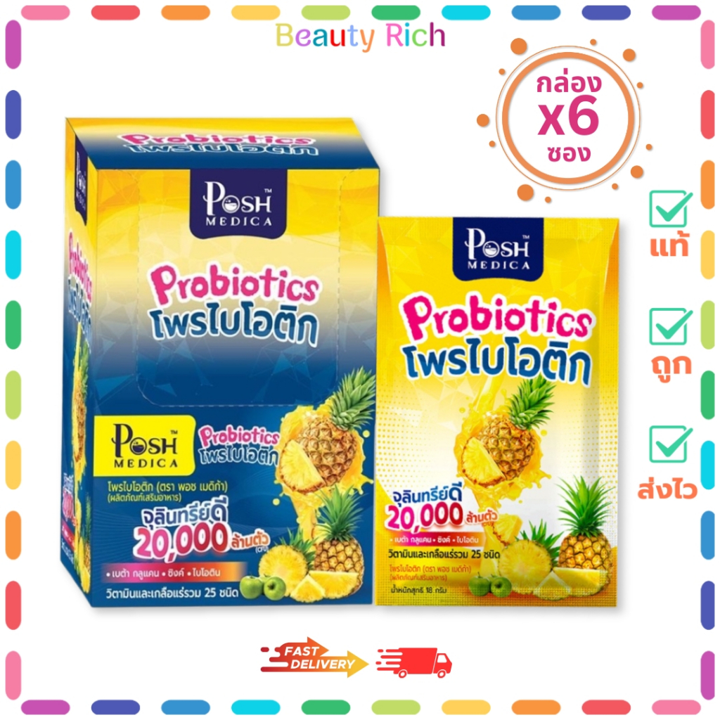 (กล่อง 6 ซอง) Posh Medica โพรไบโอติกสับปะรด (ปริมาณ 18 กรัม)