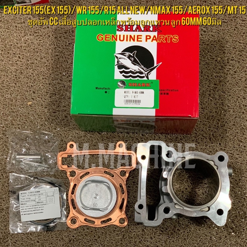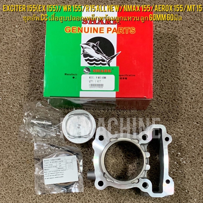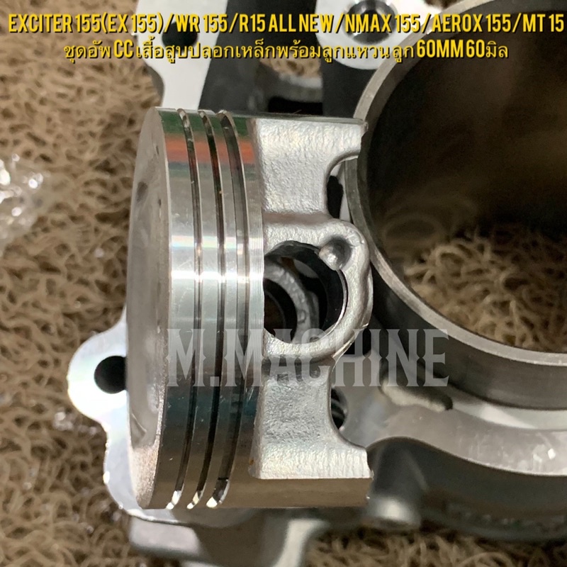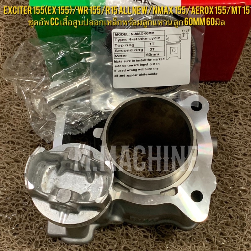 Exciter 155(Ex 155)/Wr 155/R15 All New/Nmax 155/Aerox 155 ชุดอัพ cc เสื้อสูบปลอกเหล็กพร้อมลูกแหวน ลูก 60mm 60มิล