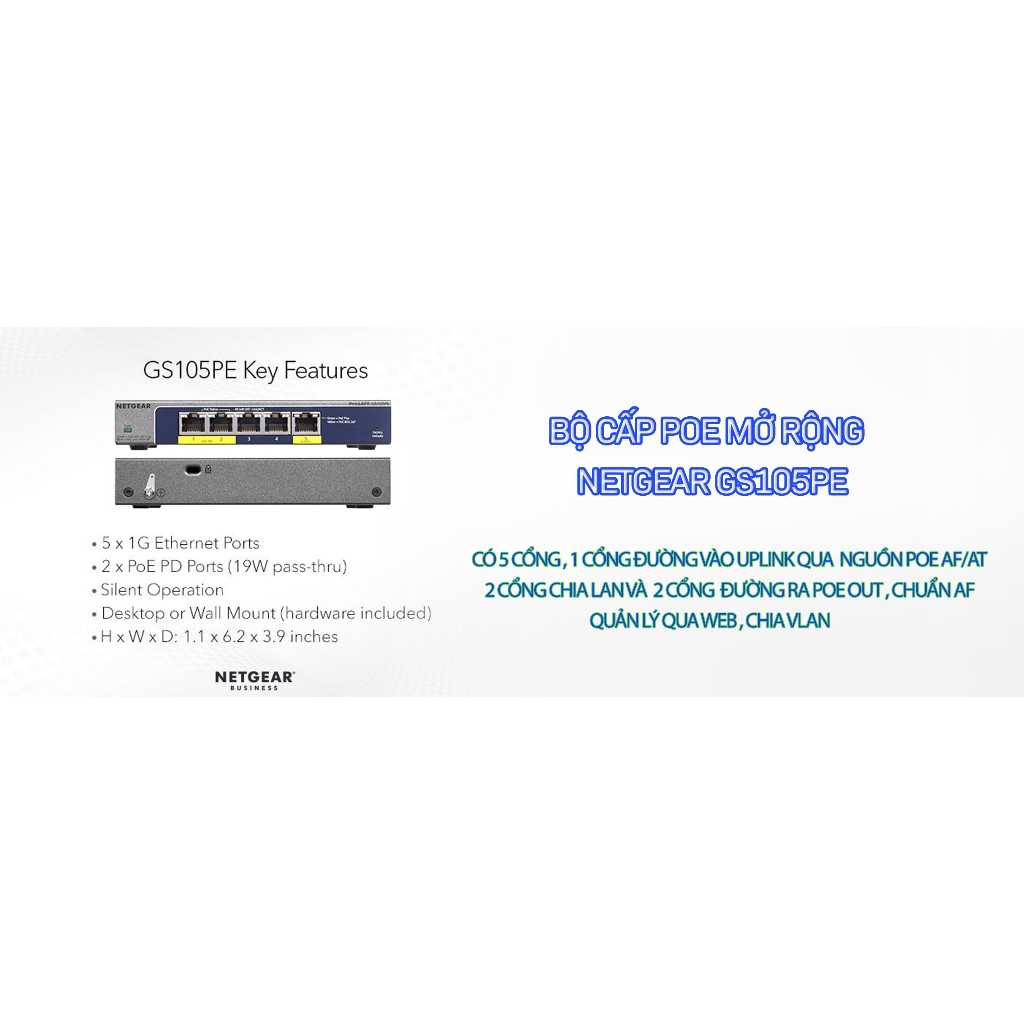 EXTANDER POE Extender - Smartly managed Netgear GS105PE Plus PoE Extender Switch