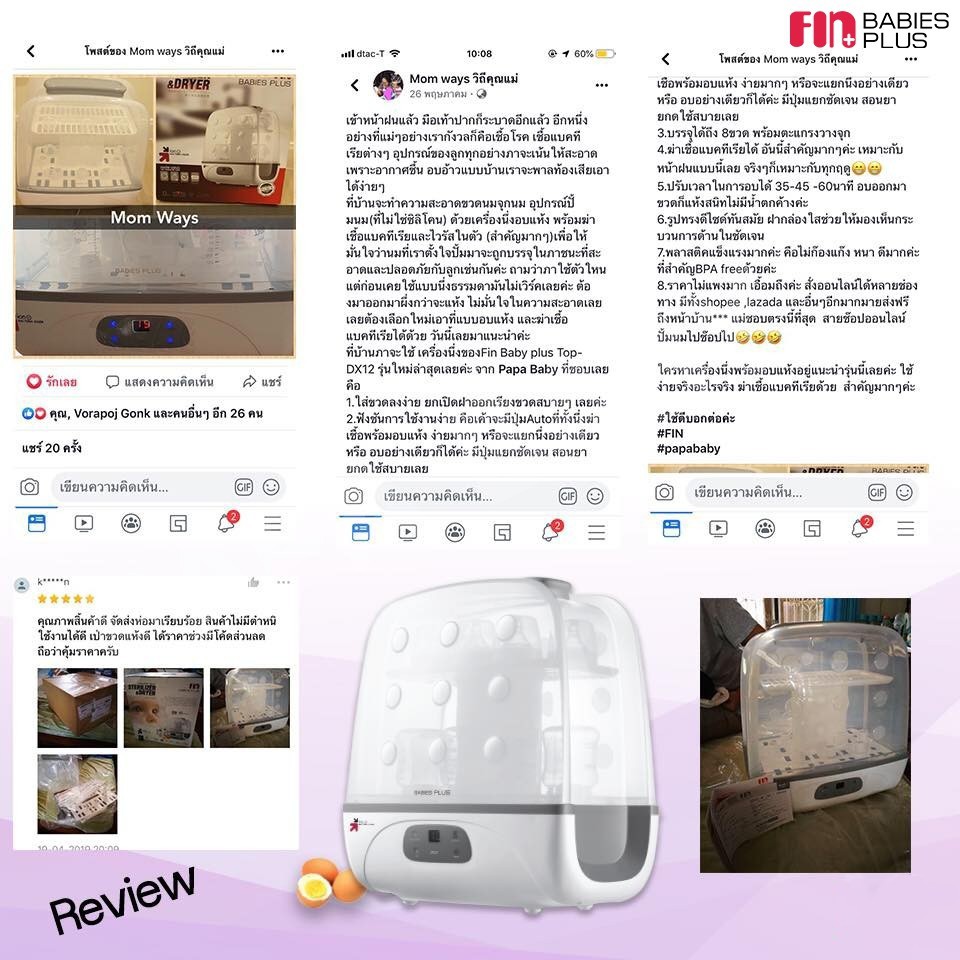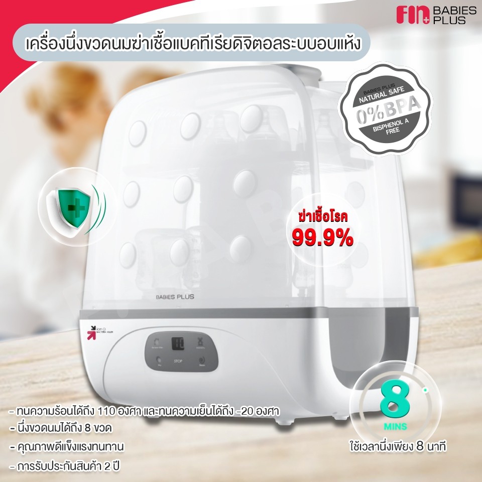 FIN เครื่องนึ่งขวดนม อบแห้ง รุ่นTOP-DX12 รับประกัน1ปี หน้าจอLCD ใช้งานง่าย
