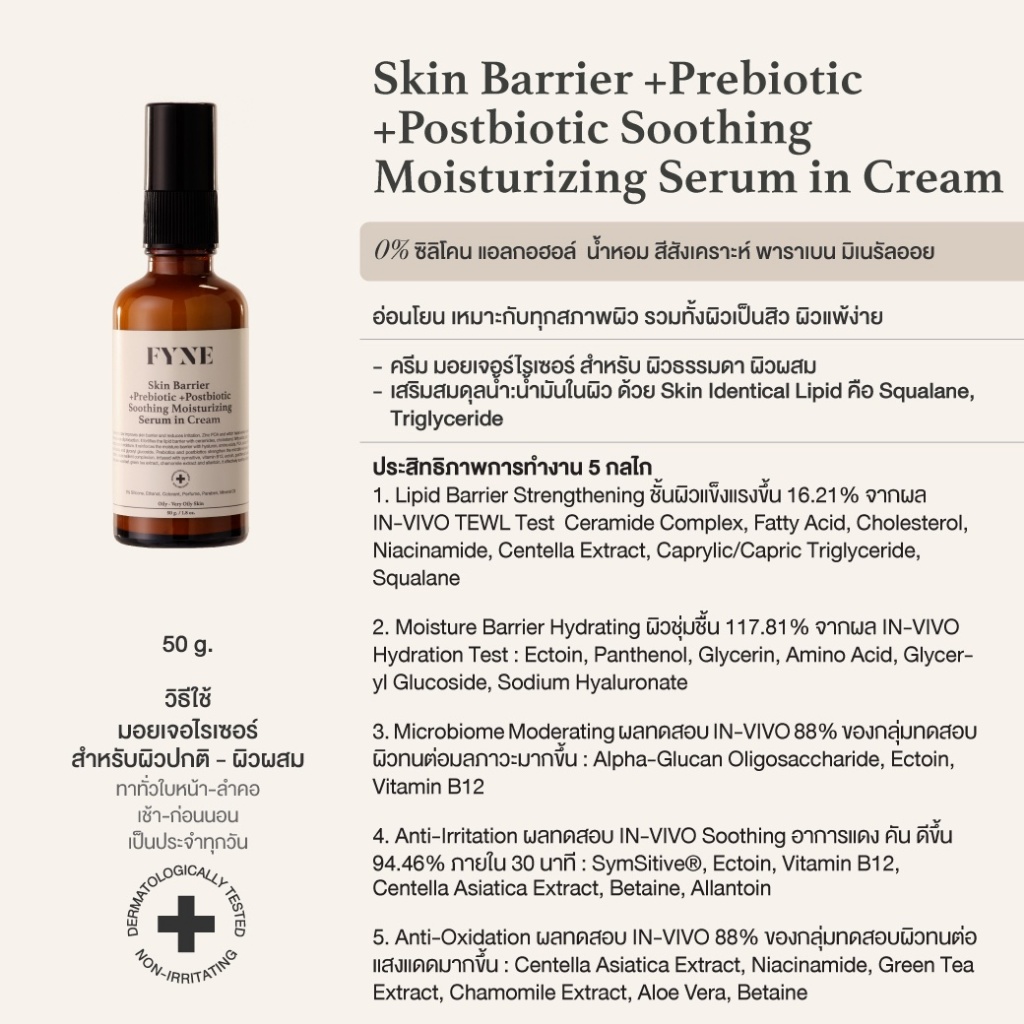 B02 l [มอยเจอร์ ผิวธรรมดา-ผสม FYNE Skin Barrier Serum in Cream +Prebiotic +Postbiotc