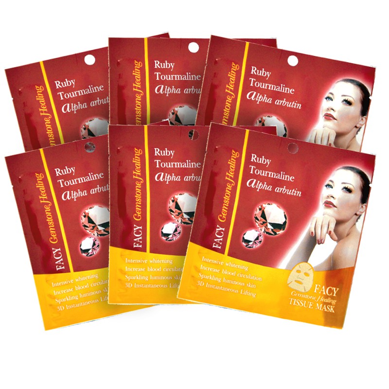 Facy Tissue Mask Ruby Tourmaline มาร์คหน้าบำรุงผิวเข้มข้น ผสานอนุภาคทับทิม และทัวร์มารีน ช่วยให้ผิวขาว แพ็ค 6 ชิ้น