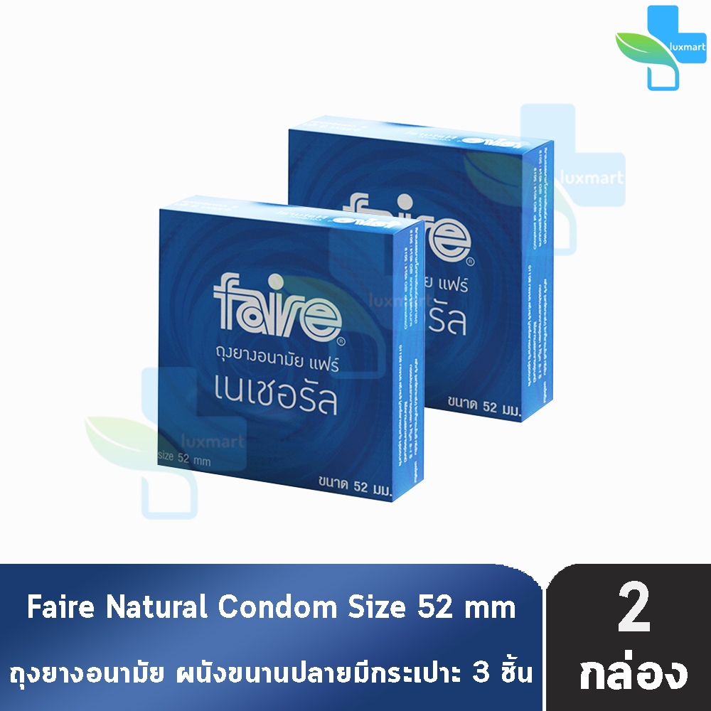 Faire Natural ถุงยางอนามัย แฟร์ เนเชอรัล 52 มม บรรจุ 3 ชิ้น [2 กล่อง] JJ 5321 ผิวเรียบ condom ถุงยาง