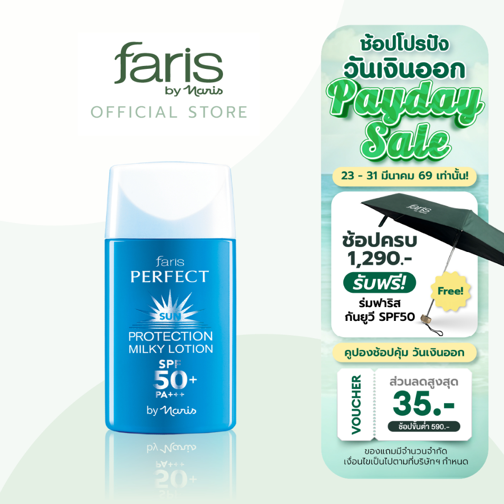 Faris by Naris Perfect Sun Protection Milky Lotion SPF 50+ PA+++ โลชั่นกันแดดสูตรบางเบา 30 ml