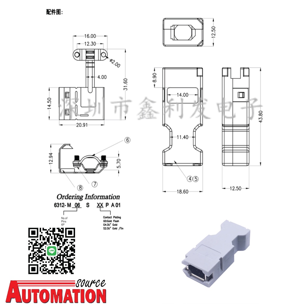 Female Connector CN3 Encoder Connector 6P , IEEE 1394