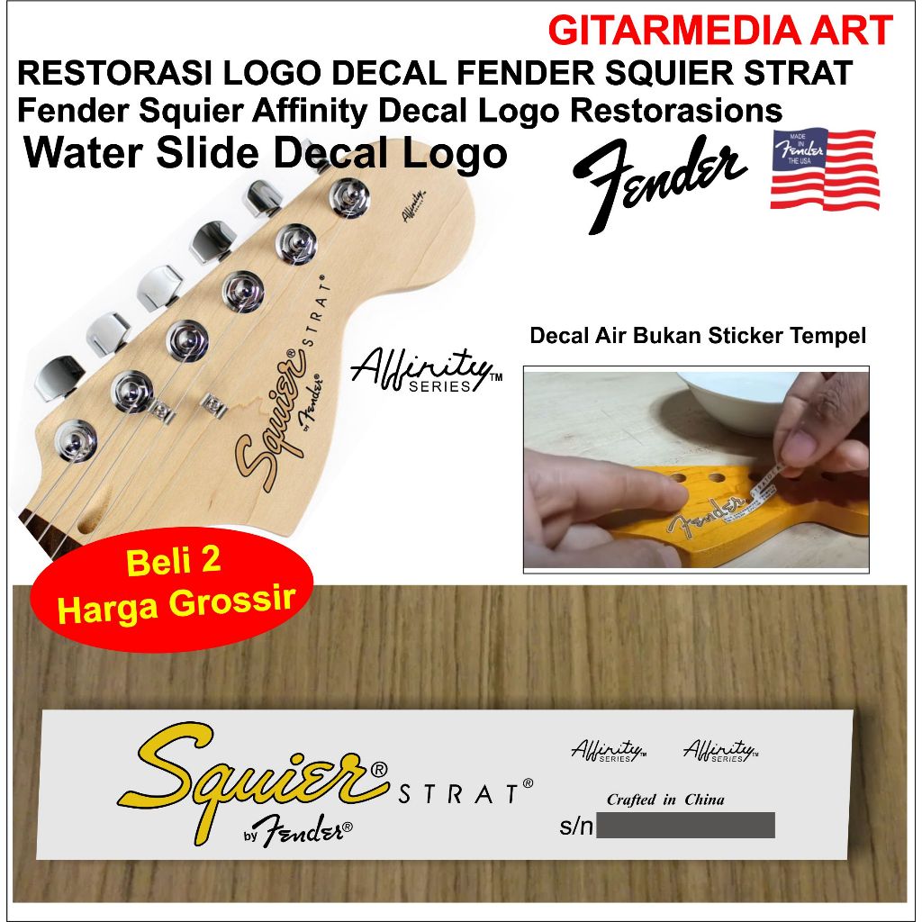 Fender squier stratocaster affinity series fender logo decal, affinity squier logo