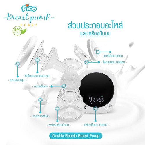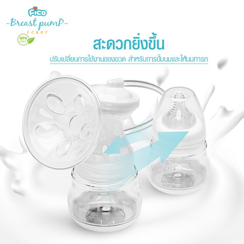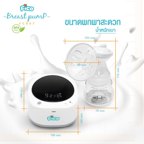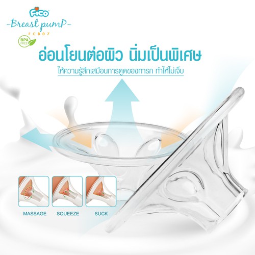 Fico เครื่องปั้มนมมอเตอร์เดี่ยว ชาร์จไฟเก็บไว้ในตัว ซิลิโคน 3D รุ่น FCB07