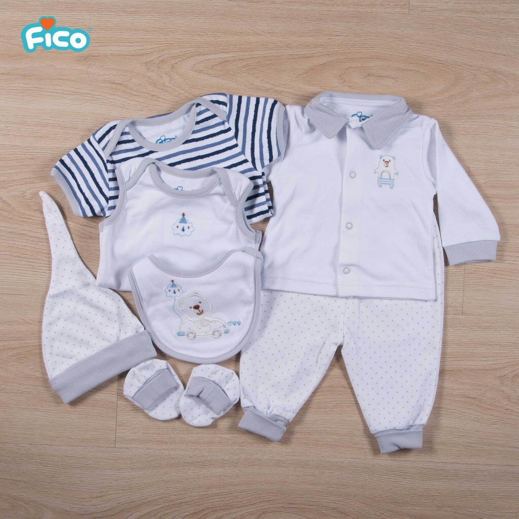 Fico เสื้อผ้าเด็กแรกเกิด เซ็ท 7 ชิ้น ลายน่ารักๆ ลายหมี F031