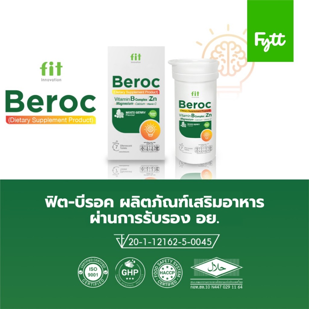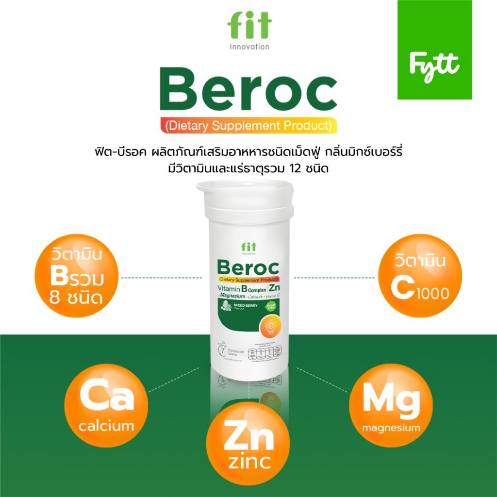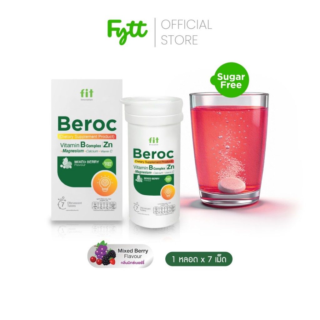 Fit Beroc | วิตามิน B + C + แร่ธาตุ 12 ชนิด | ดื่มง่าย สดชื่นไว | ไม่มีน้ำตาล | รสมิกซ์เบอร์รี่