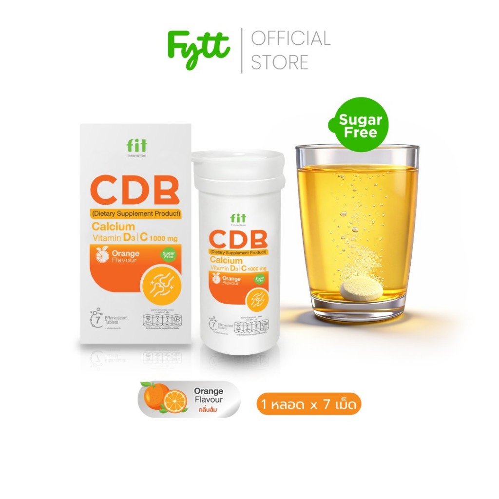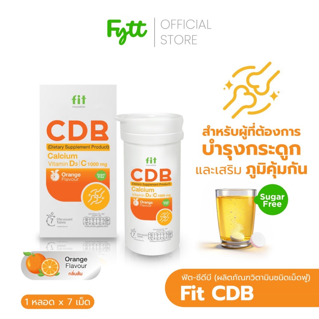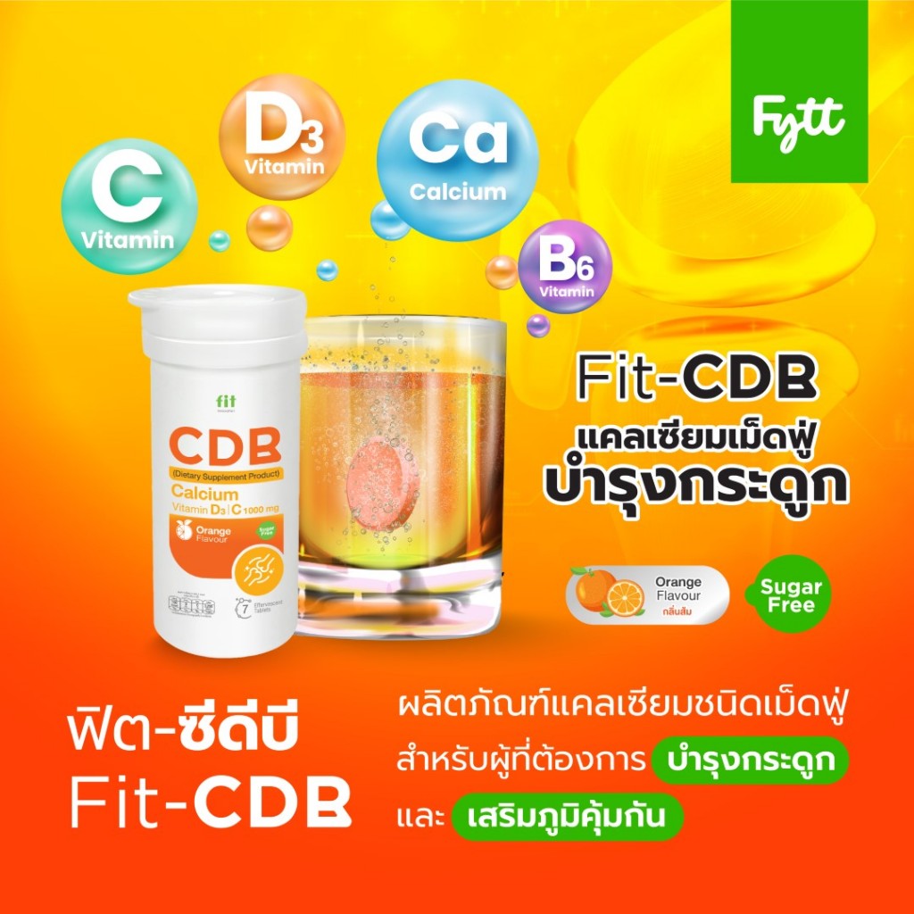 Fit CDB | แคลเซียมเม็ดฟู่ + วิตามิน D3 +C +B | ดูแลกระดูก ฟัน | รสส้ม สดชื่น ดื่มง่าย | ไม่มีน้ำตาล