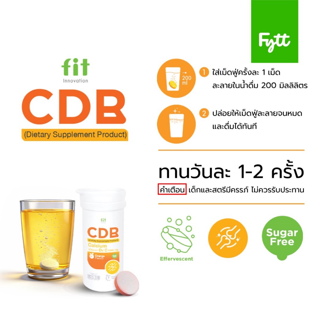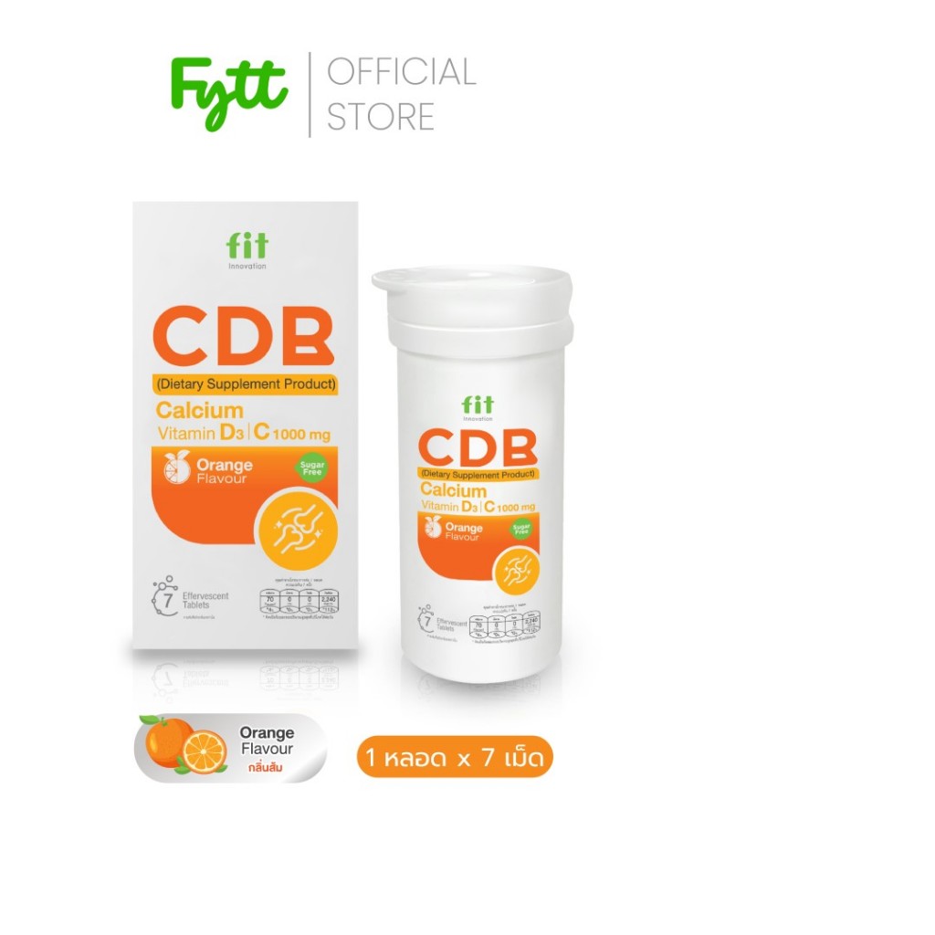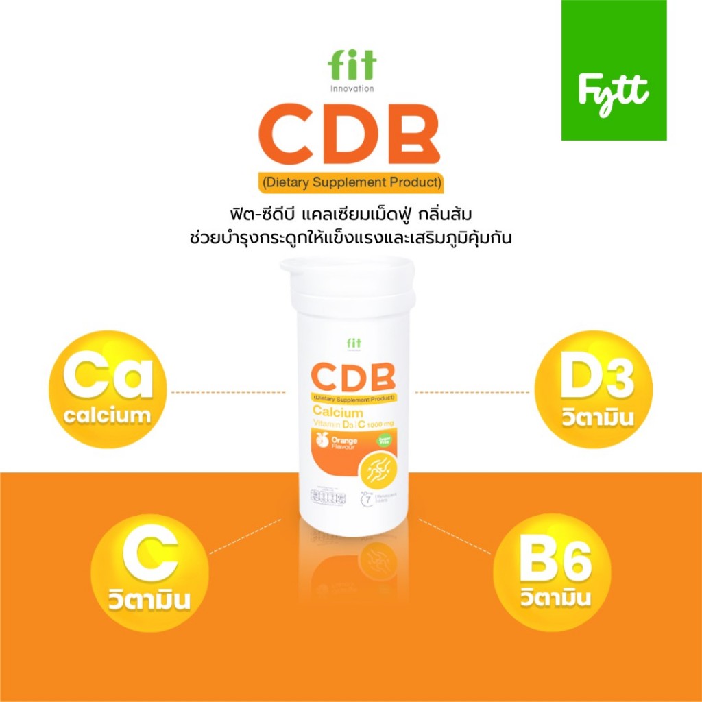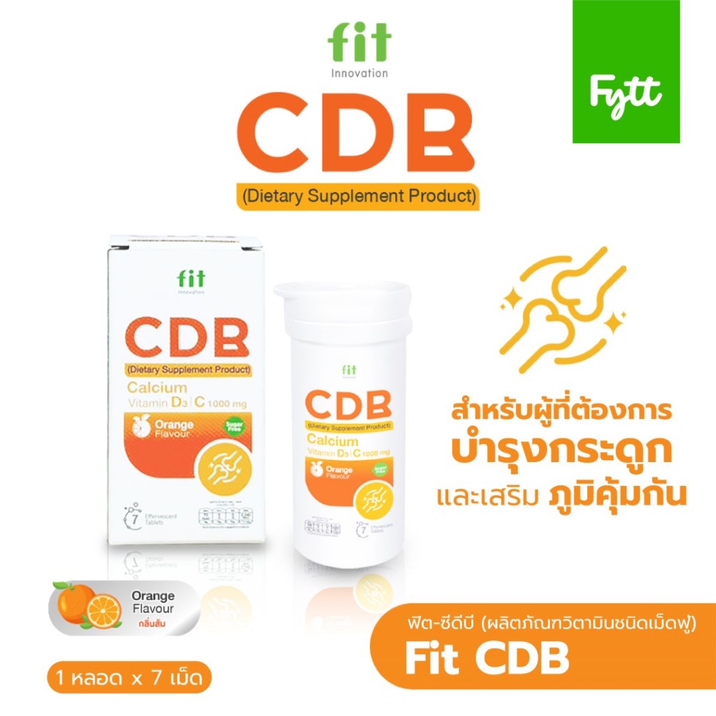 Fit CDB | แคลเซียมเม็ดฟู่ + วิตามิน D3 +C +B | ดูแลกระดูก ฟัน | รสส้ม สดชื่น ดื่มง่าย | ไม่มีน้ำตาล