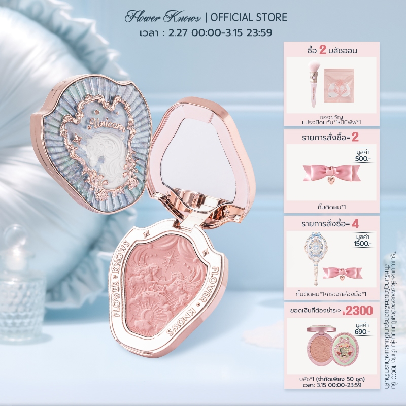 Flower Knows บลัชออนปัดแก้ม ยูนิคอร์น 6 สี 5 กรัม บลัชออนสีเดียว บลัชออนแบบแป้ง