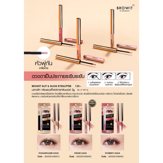 ส่งฟรี/มีไลฟ์ (1ชิ้น)Browit By Nongchat Glit and GlowEyeglitter 3g บราวอิท น้องฉัตร อายแชโดว์กลิตเตอร์ เนื้อลิควิด