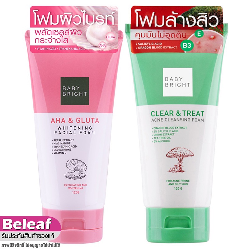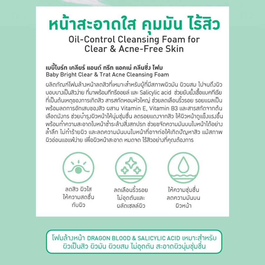 เบบี้ไบร์ท โฟมล้างหน้า สิวอุดตัน คุมมัน Acne 120g Baby Bright Clear Treat Acne Cleansing Foam