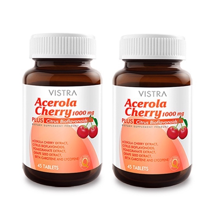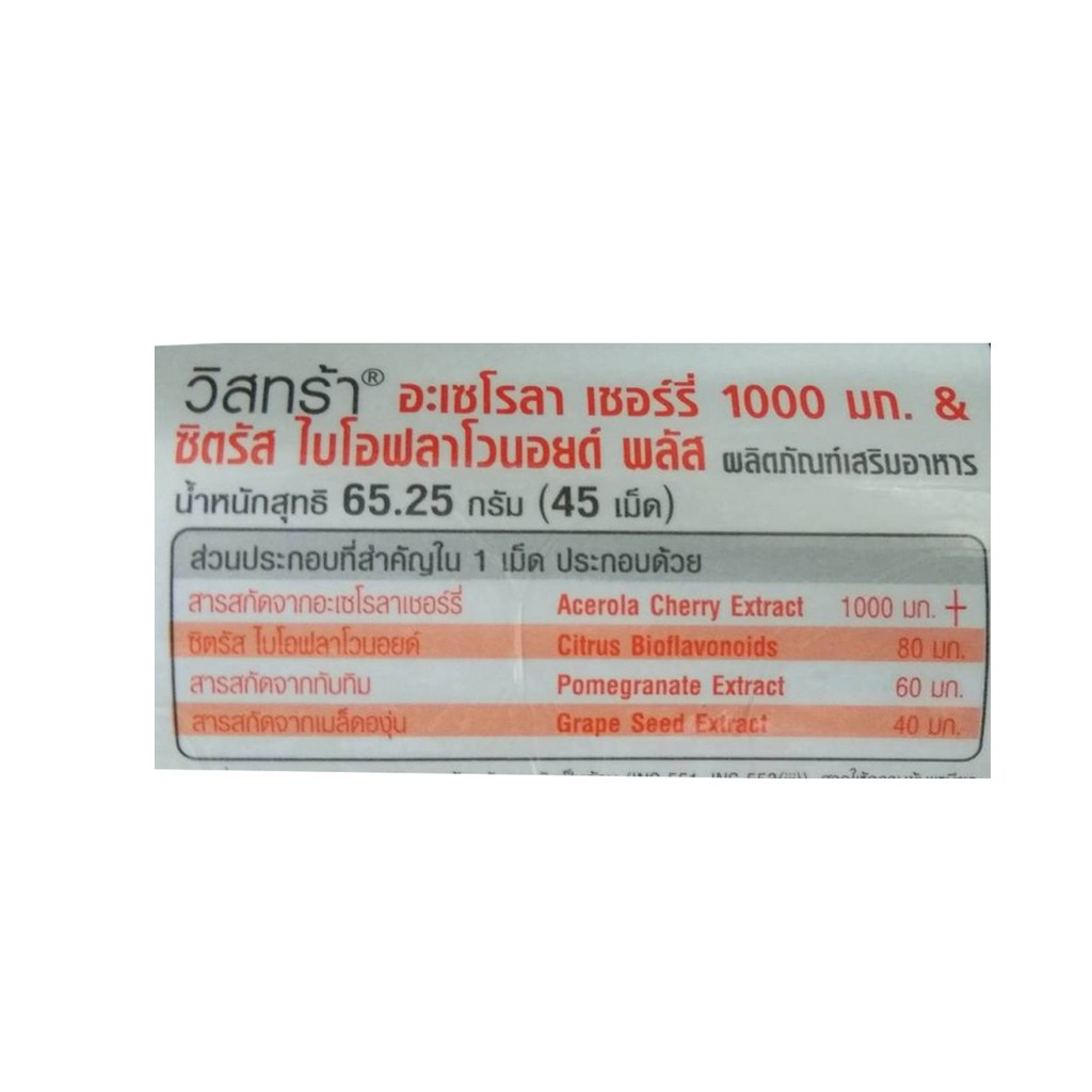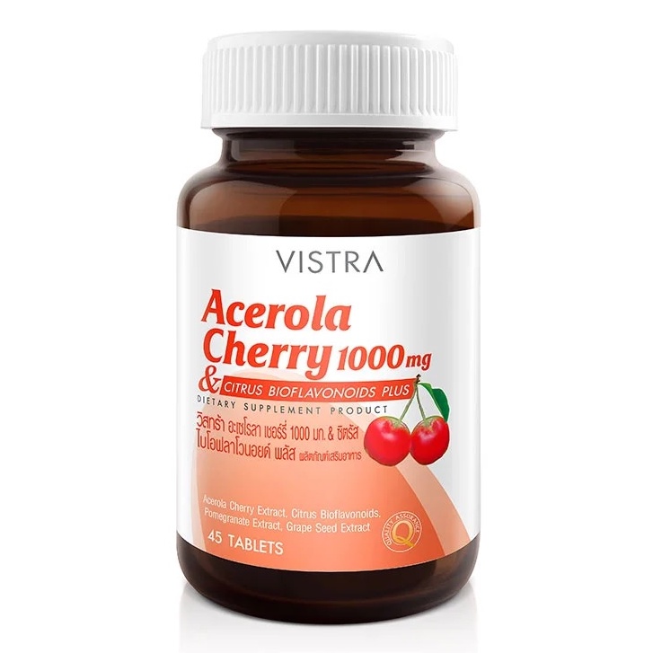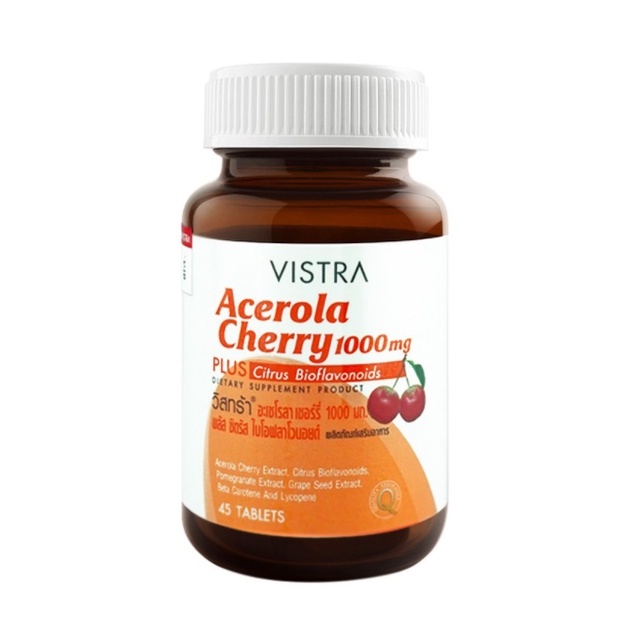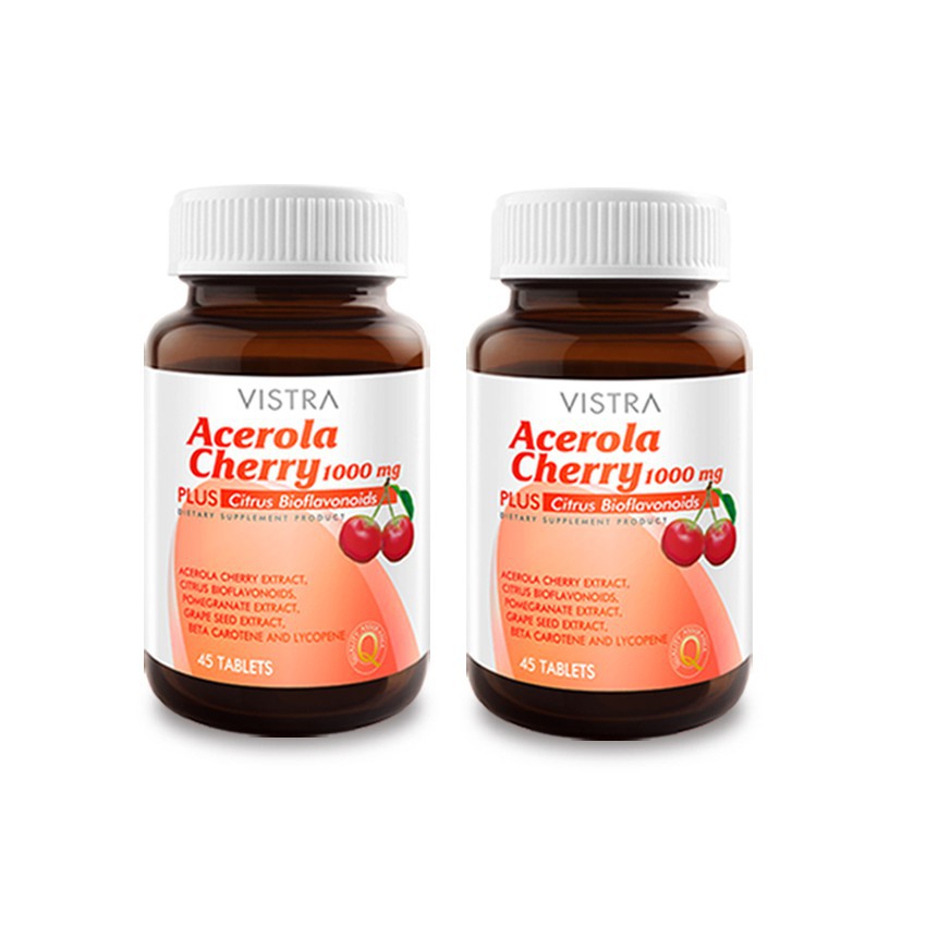 Vistra Acerola Cherry 1000 mg วิสทร้า อะเซโรลา เชอร์รี่ ขนาด 45 เม็ด จำนวน 1 ขวด 11942 / 2 ขวด 11942