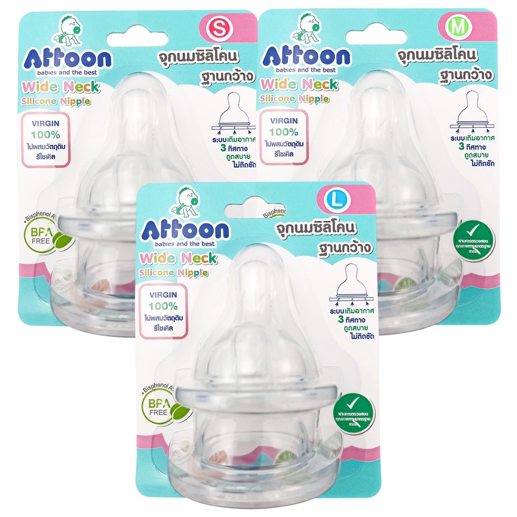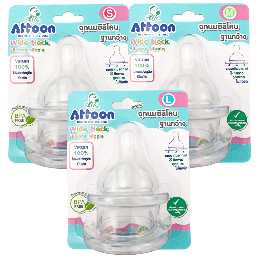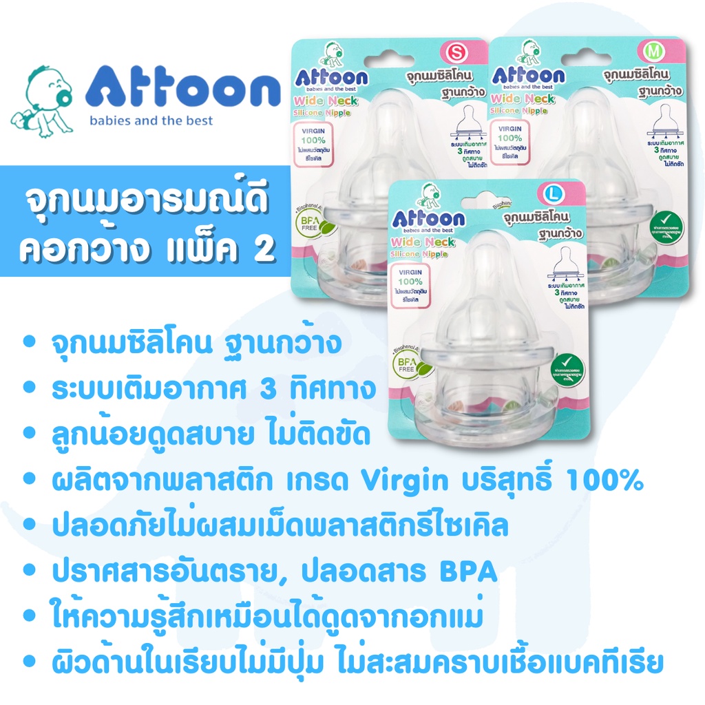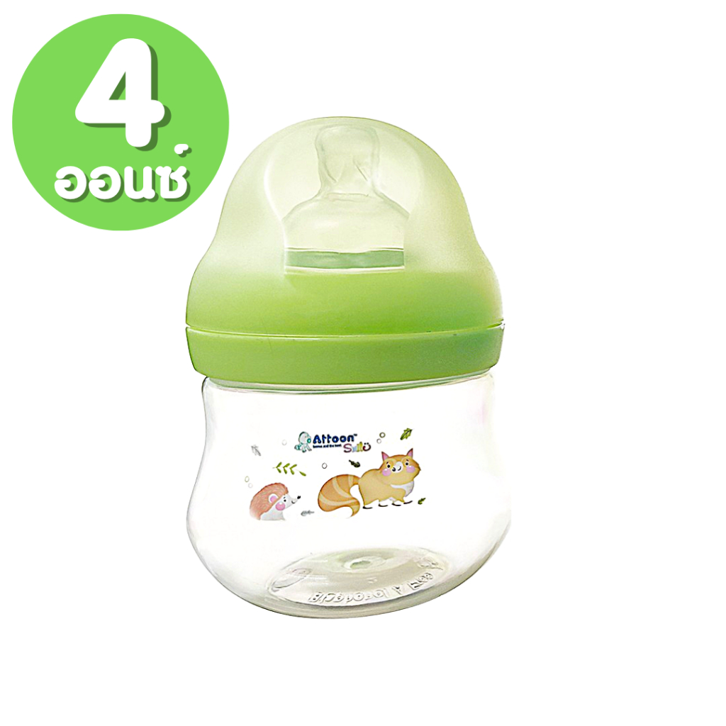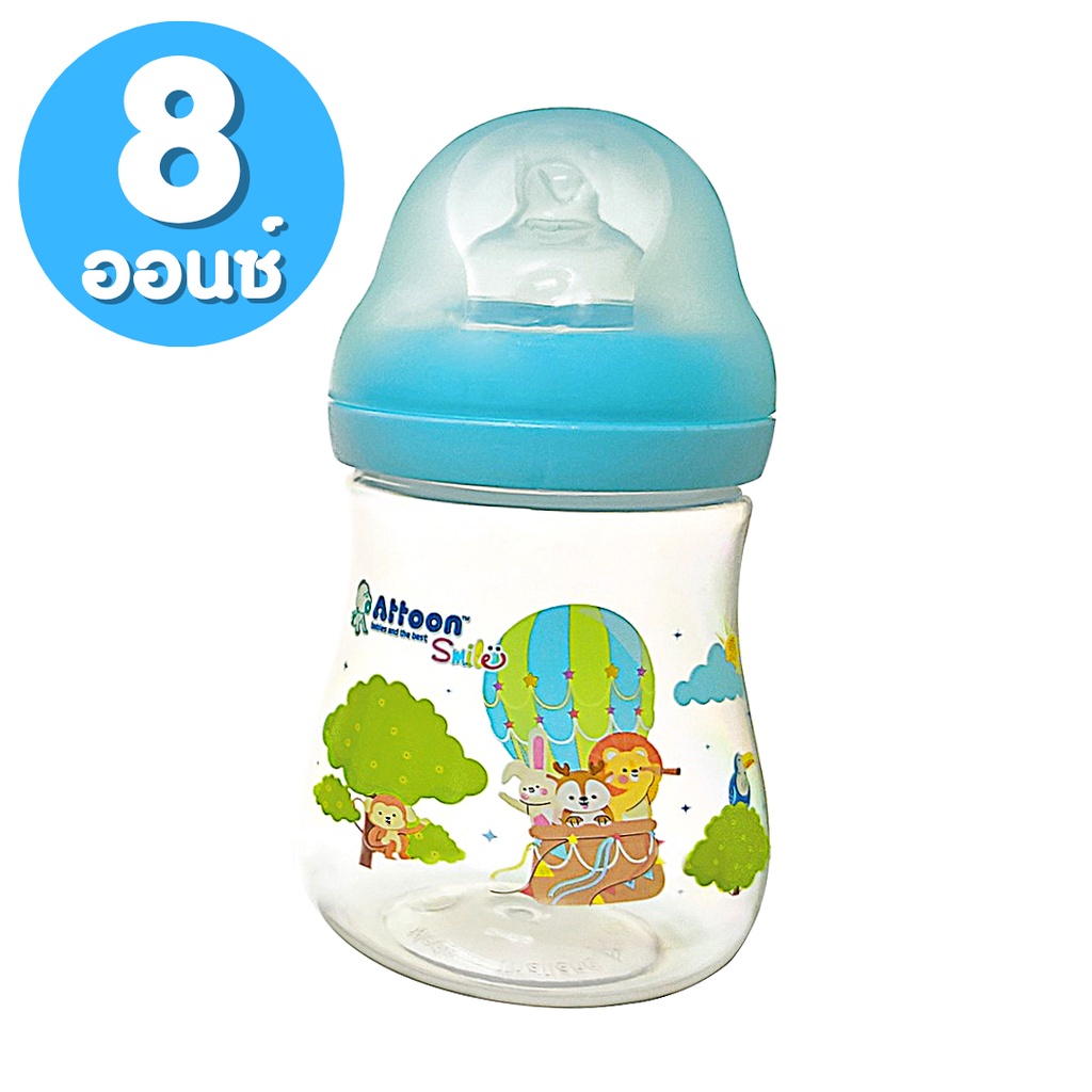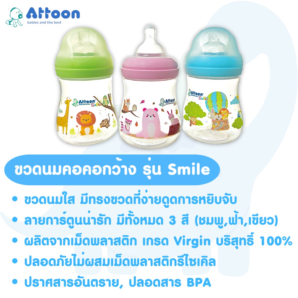 ขวดนมคอกว้าง Attoon Smile ( 4 / 8 ออนซ์ )ขวดนมเด็ก มาพร้อม จุกนมคอกว้าง