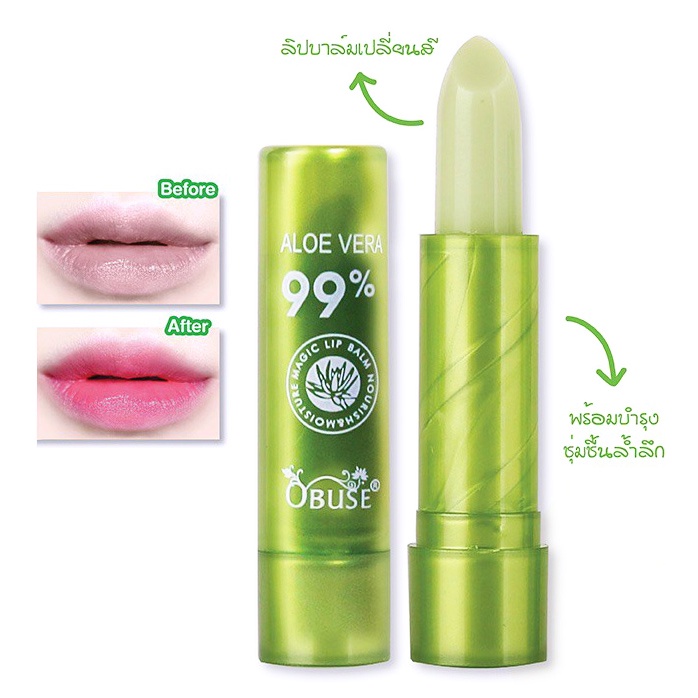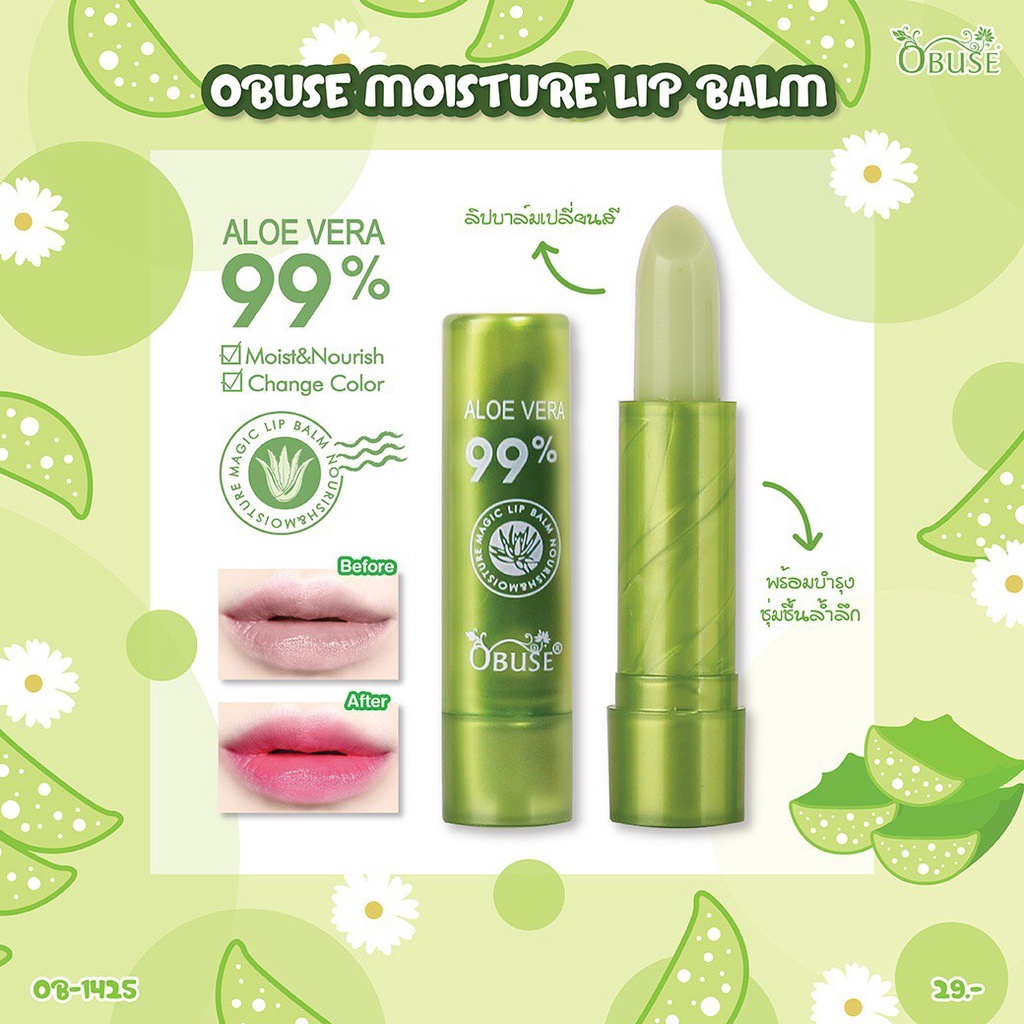 โอบิวซ์ ลิปบาล์ม ลิปมัน เปลี่ยนสี ว่านหางจระเข้ 3.5g OB1425 Obuse Aloe Vera Moisture Lip Balm