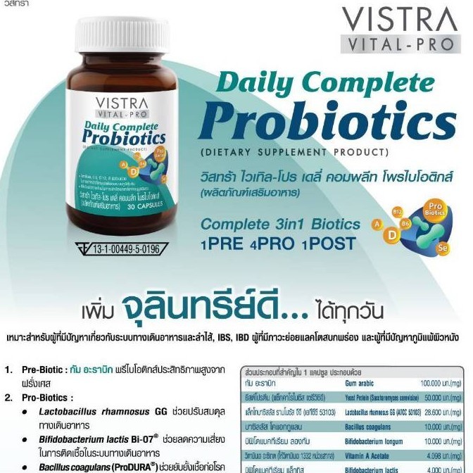 VISTRA วิสทร้า Probiotics โพรไบโอติกส์ Vital-Pro Daily Complete Probiotic 30 เม็ด