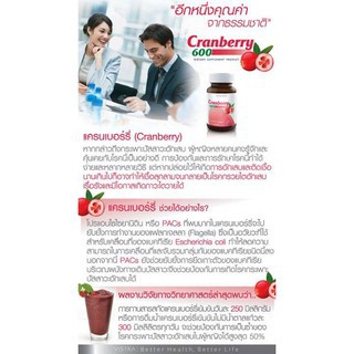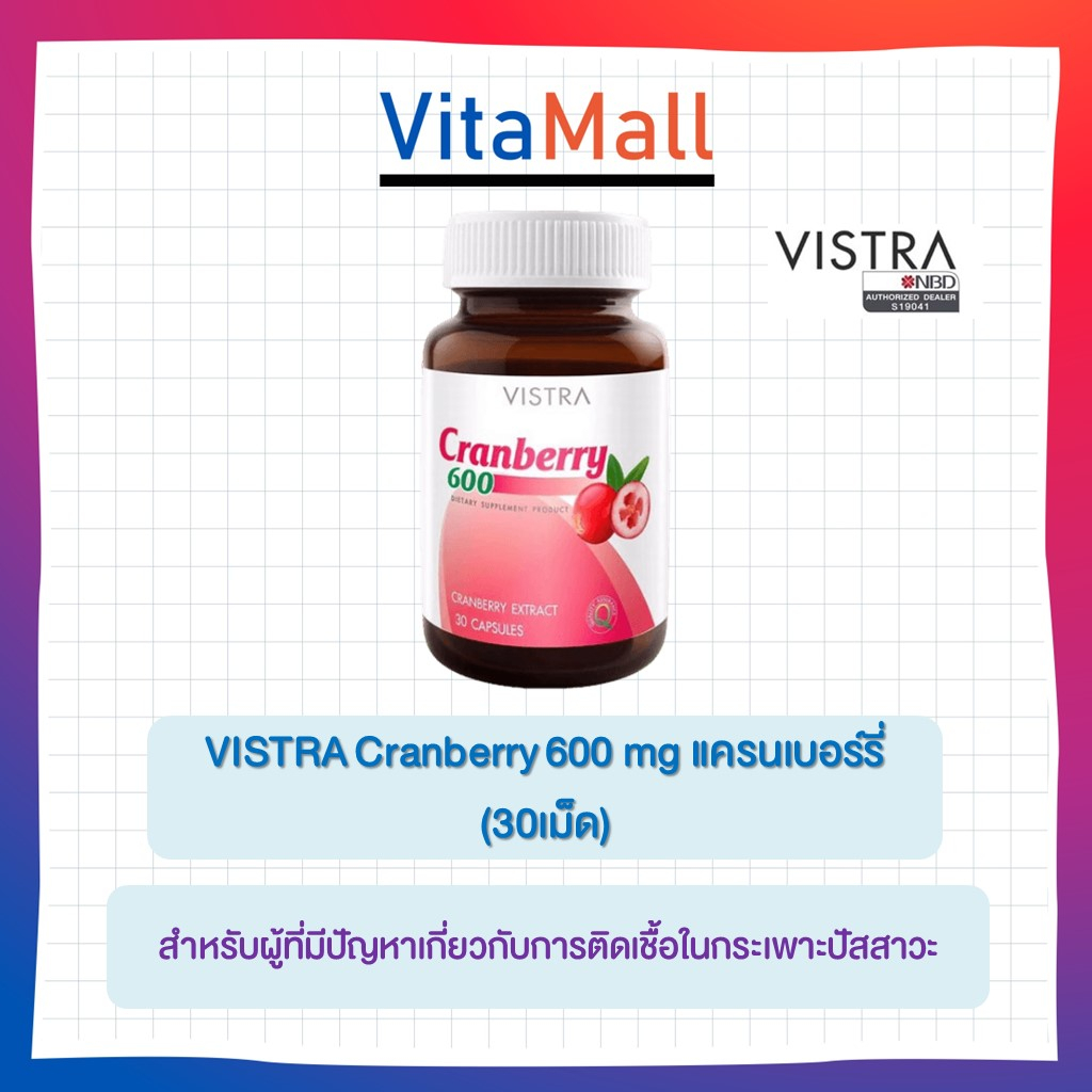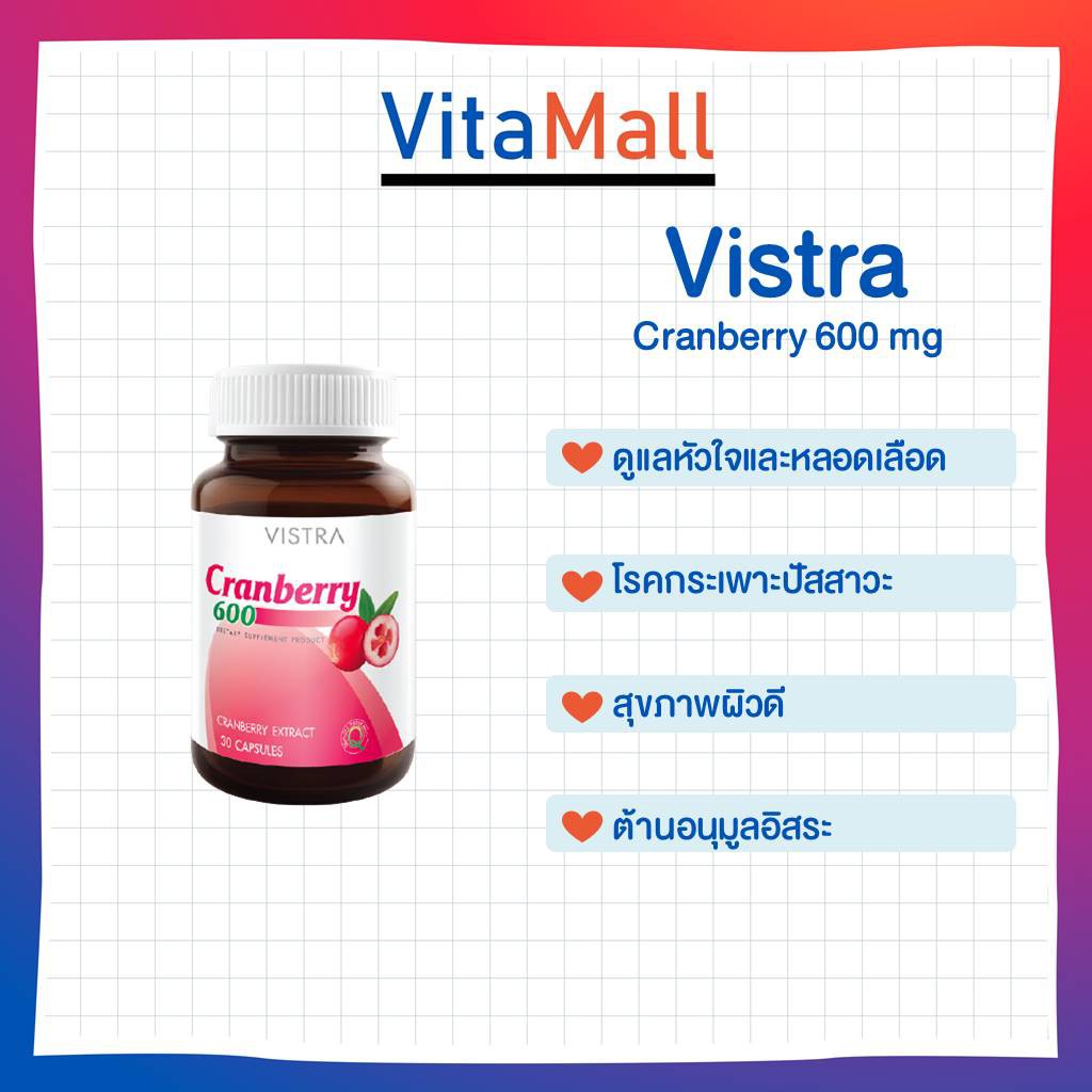 VISTRA Cranberry 600 mg แครนเบอร์รี่ เหมาะสำหรับผู้ที่มีปัญหาเกี่ยวกับการติดเชื้อในกระเพาะปัสสาวะ