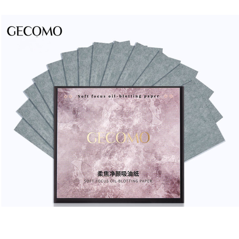 เกคอมโอ กระดาษดูดซับน้ํามันถ่านไม้ไผ่พร้อมพัฟกระดาษดูดซับน้ํามันบนใบหน้า