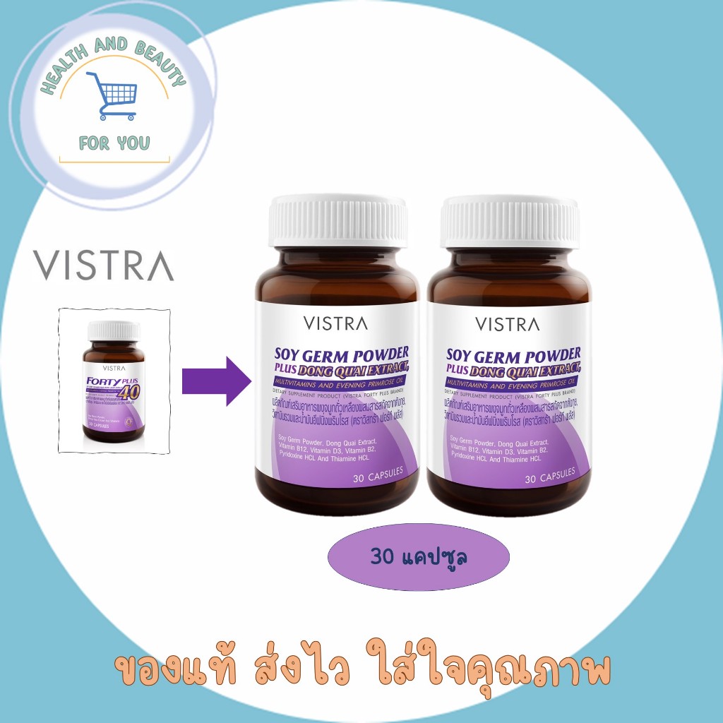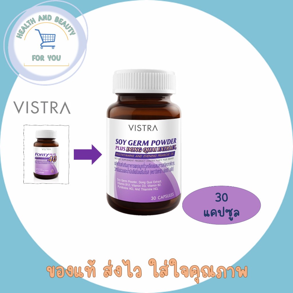 🔥เเพ็คเกทใหม่🔥Vistra Soy germ Powder (Forty Plus)30 เม็ด ช่วยบรรเทาอาการก่อนวัยทอง เเละวิตามินรวมสำหรับผู้หญิงวัย40+