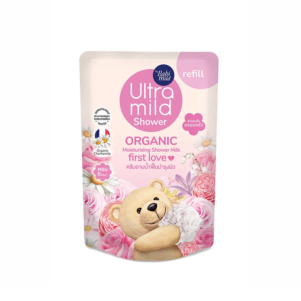 Babi เบบี้มายด์ อัลตร้ามายด์ ออร์แกนิค ชาวเวอร์ มิลค์ เฟิร์ส เลิฟ 360 มล. ถุงเติม สบู่เหลว