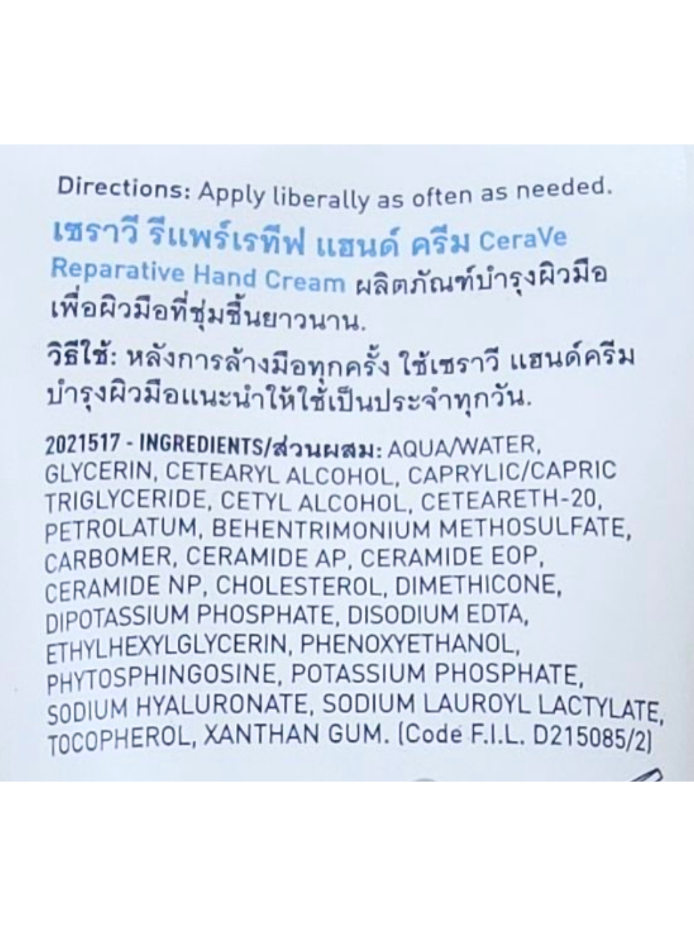 CERAVE REPARATIVE HAND CREAM ครีมบำรุงผิวมือ เพื่อมือที่ดูนุ่มชุ่มชื้น