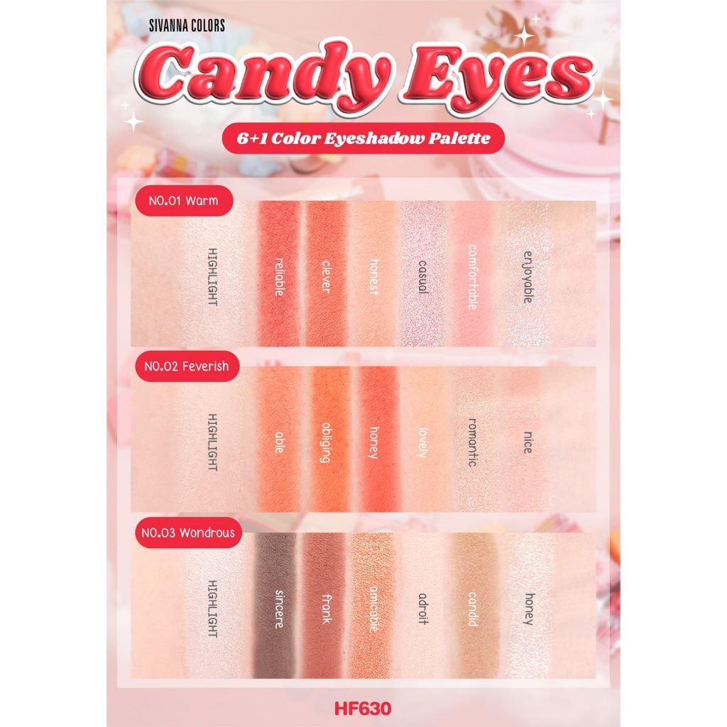 อายแชโดว์ทาตา ซีเวนน่า คัลเลอร์ส Sivanna Colors Candy Eyes 6+1 Color Eyeshadow Palette HF630