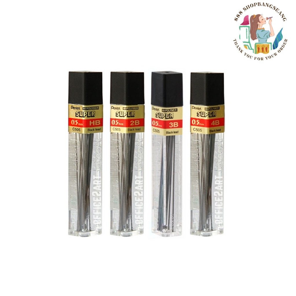 ไส้ดินสอกด เพนเทล ขนาด 0.5มม. Pentel Hi-Polymer Super C505 HB/2B/4B