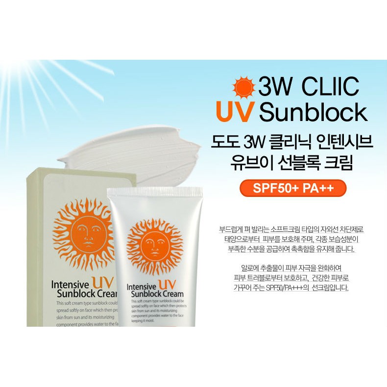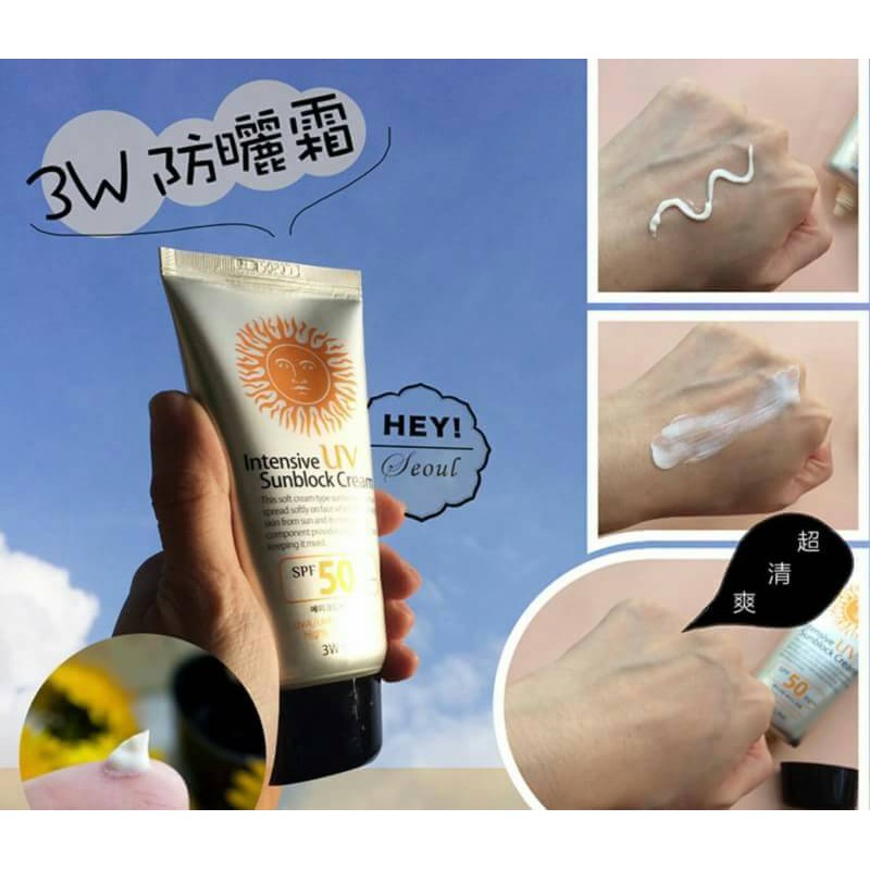 กันแดดขั้นเทพ 3W Intensive UV Sunblock Cream SPF50 Pa+++ 70ml