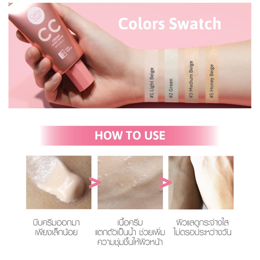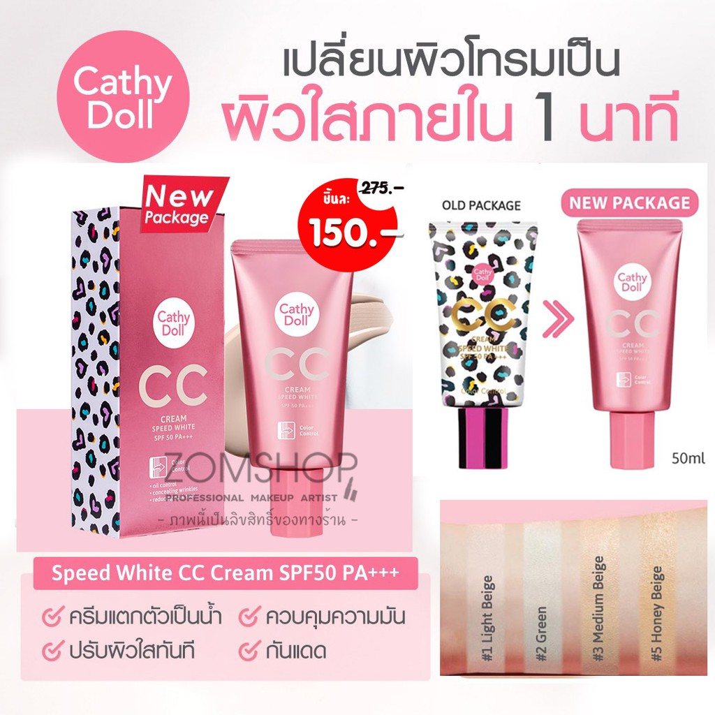 【สีชมพู】ครีมรองพื้น ผิวฉ่ำ【รองพื้นลายเสือในตำนาน】CC CREAM SPF50 PA+++ 50ML CATHY DOLL SPEED WHITE