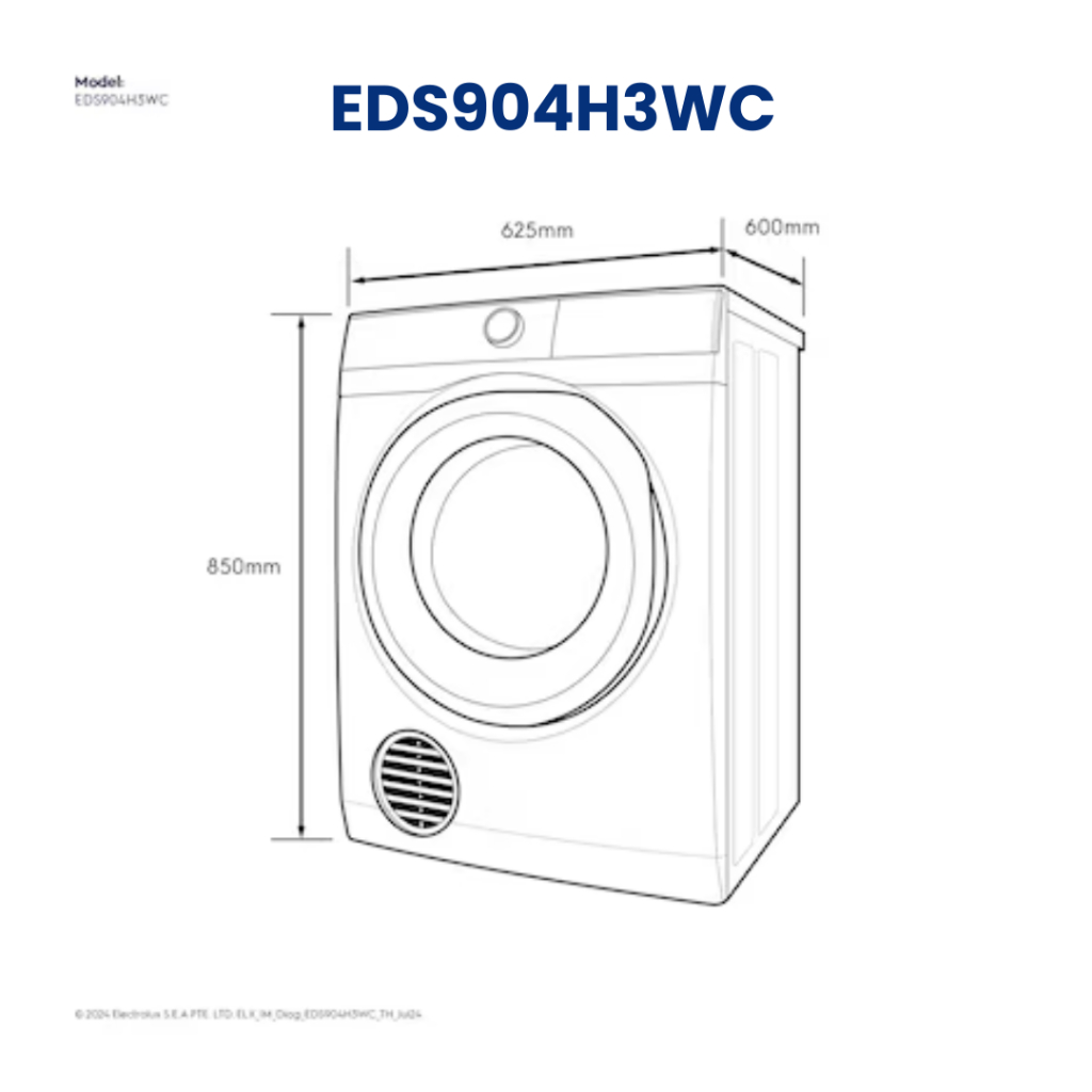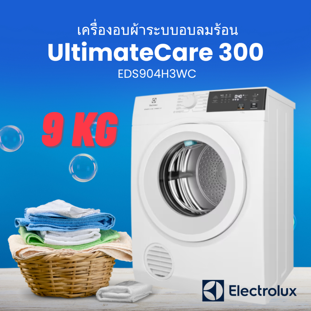 [[พร้อมส่ง]] Electrolux เครื่องอบผ้า 9 กก. รุ่น EDS904H3WC เทคโนโลยีอบลมร้อน Vapour Refresh