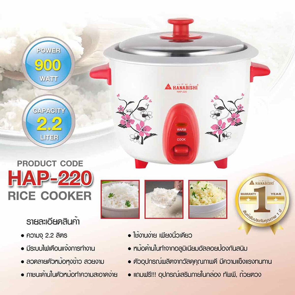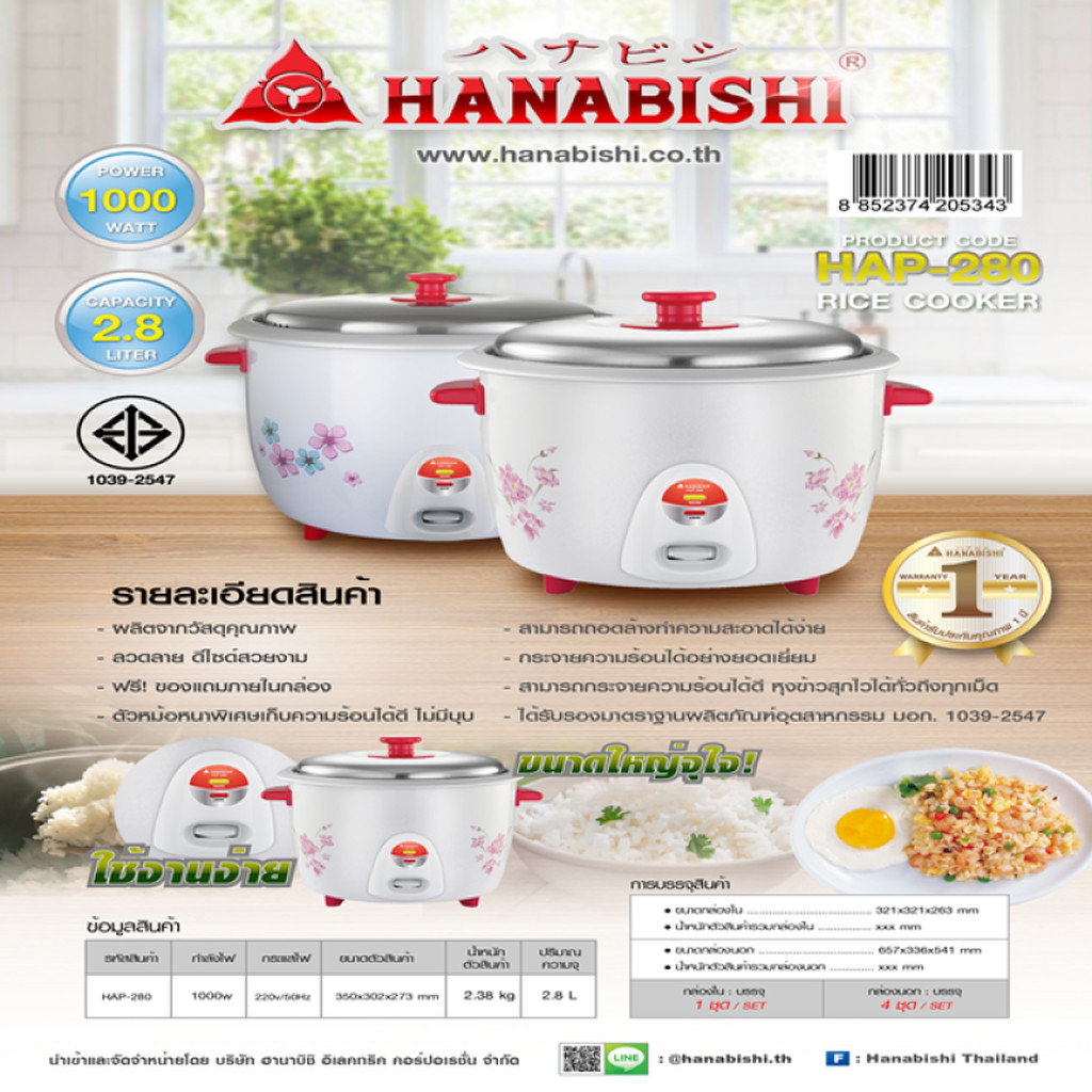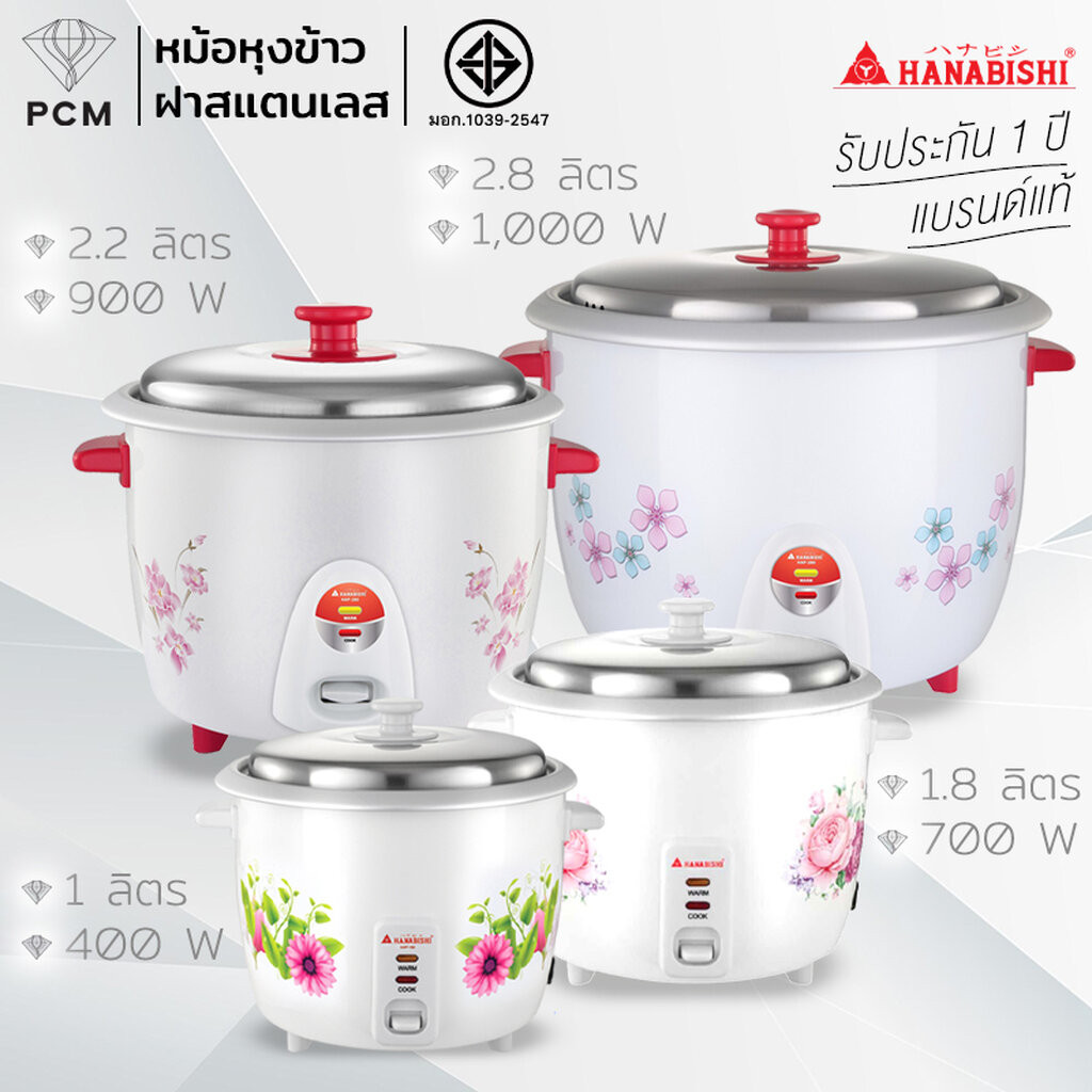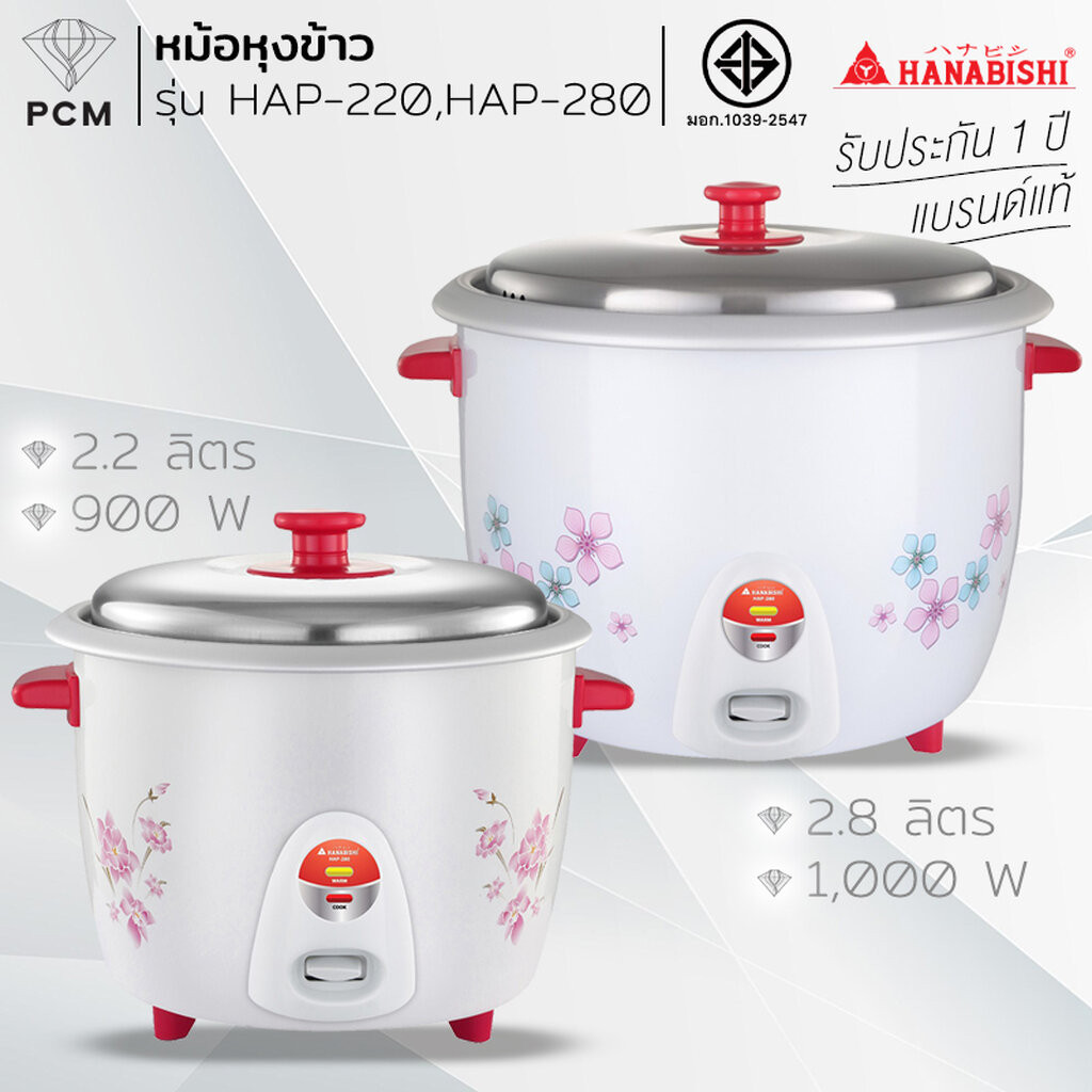 HANABISHI (PCM) หม้อหุงข้าว 1, 1.8 , 2.2 ,2.8 ลิตร รุ่น HAP-160 HAP-180 HAP-220 และ HAP-280