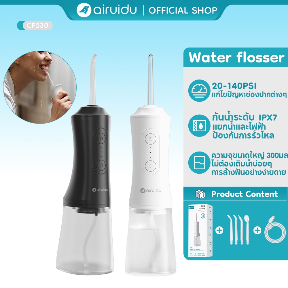 Airuidu CF530 เครื่องล้างฟันพกพา Water Flosser ไหมขัดฟัน พลังน้ํา 300ml ถังน้ำ IPX7 กันน้ำ น้ำ 2 Mins Power off