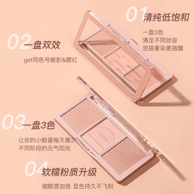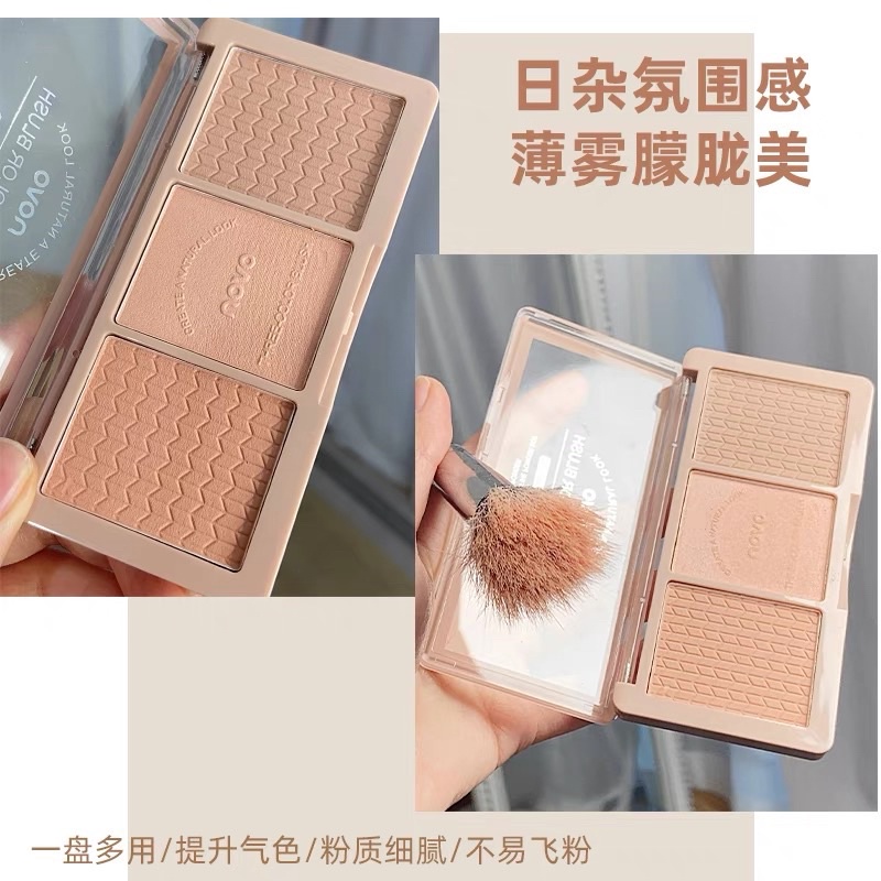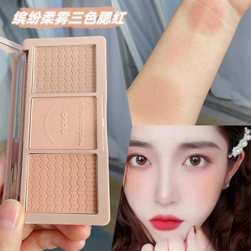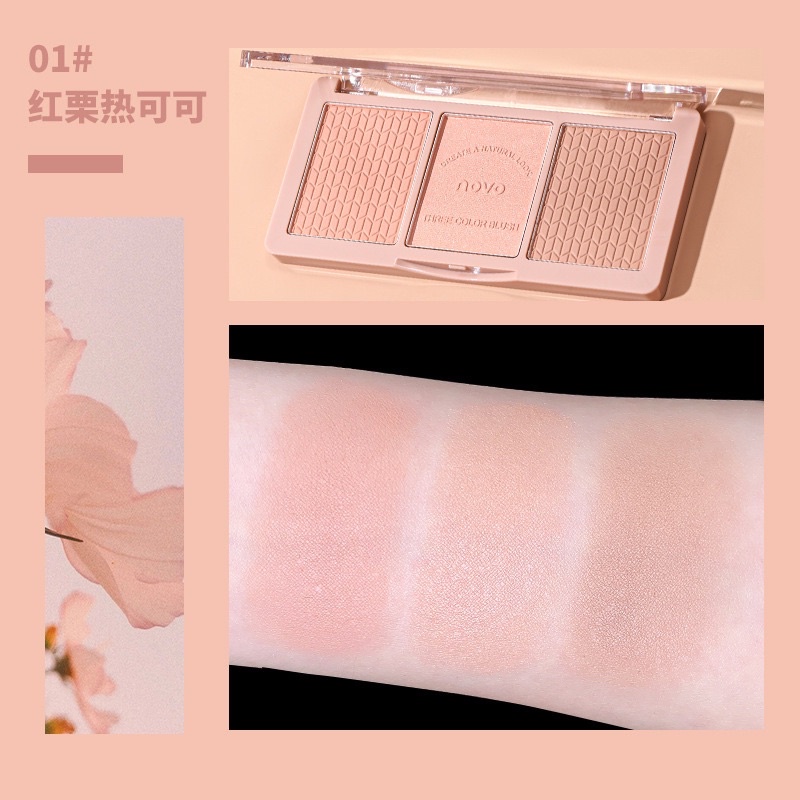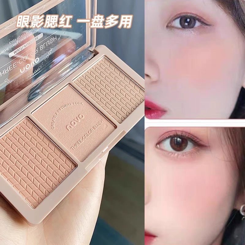 5503 (ใหม่/แท้) NOVO BLUSH ตลับบลัชออน 3สี เนื้อละเอียด นุ่มละมุน เนื้อกำมะหยี่ ติดทน กันน้ำ
